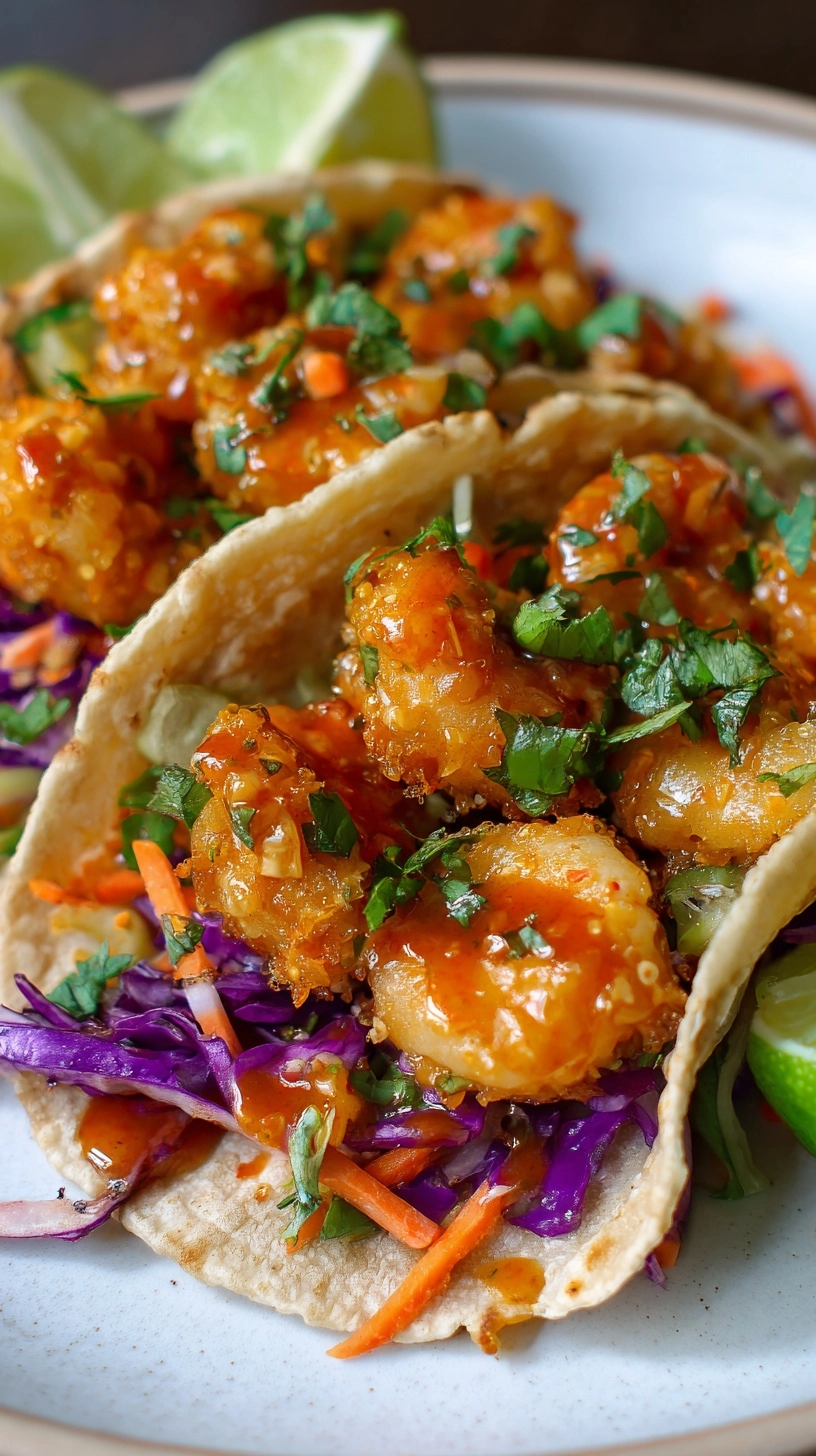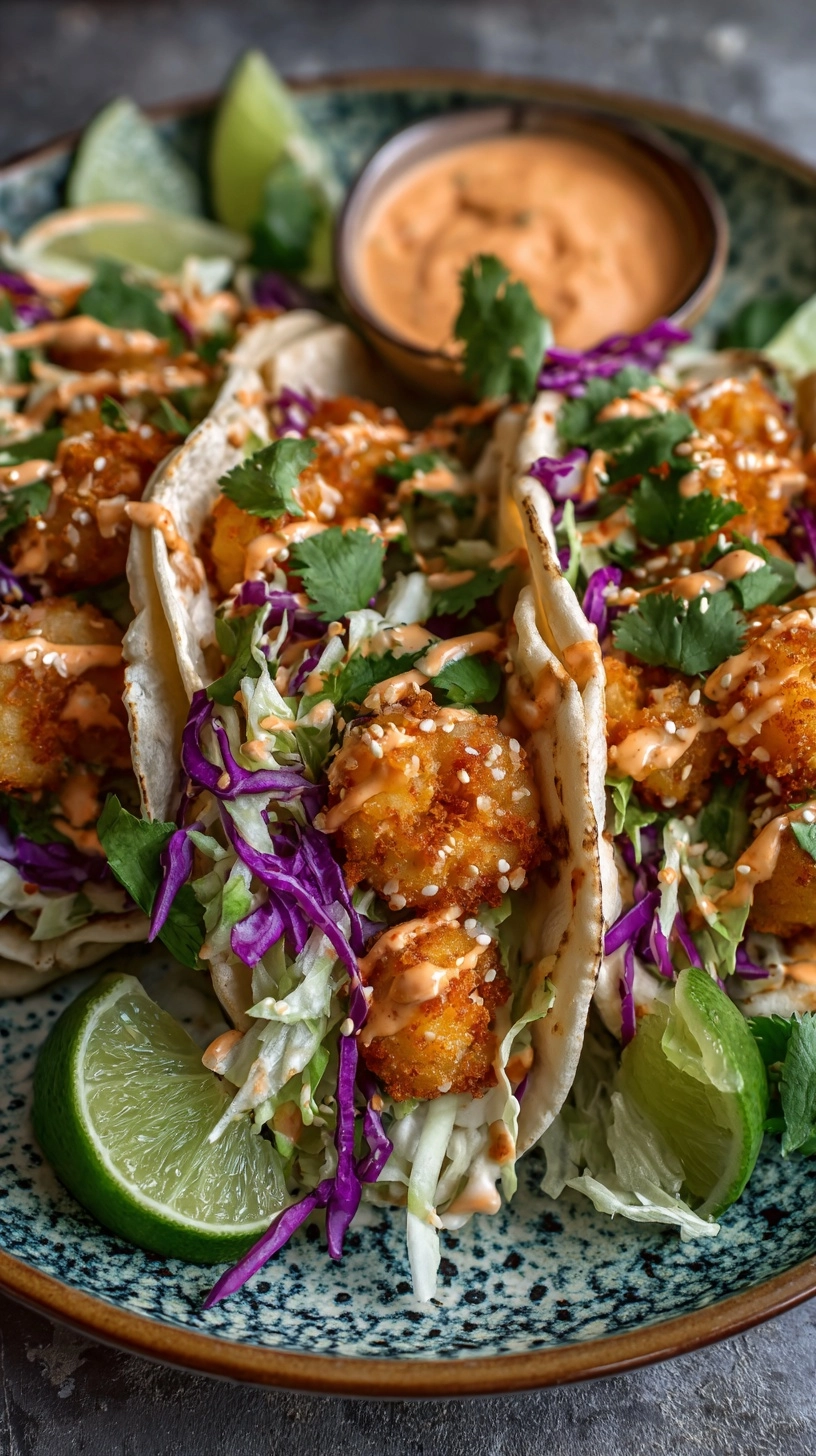 Warm tortillas briefly in a dry skillet for enhanced flexibility. Layer with crunchy cabbage, place 3-4 bang bang shrimp per taco, drizzle generously with sauce, and top with avocado slices, cilantro, and green onions. Serve immediately with lime wedges for that final brightness boost.