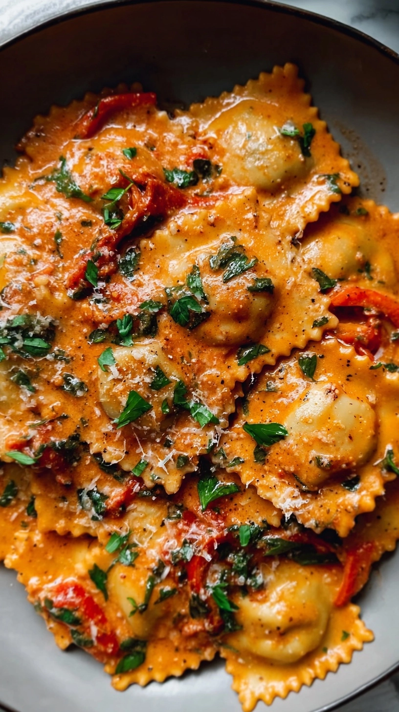 Remove from heat and stir in honey to balance natural acidity—a professional chef’s secret that rounds out sharp edges. If using cream, add it now for luxurious silkiness. Taste and adjust seasoning, remembering that the sauce will be further enhanced when tossed with your cooked ravioli and pasta water.