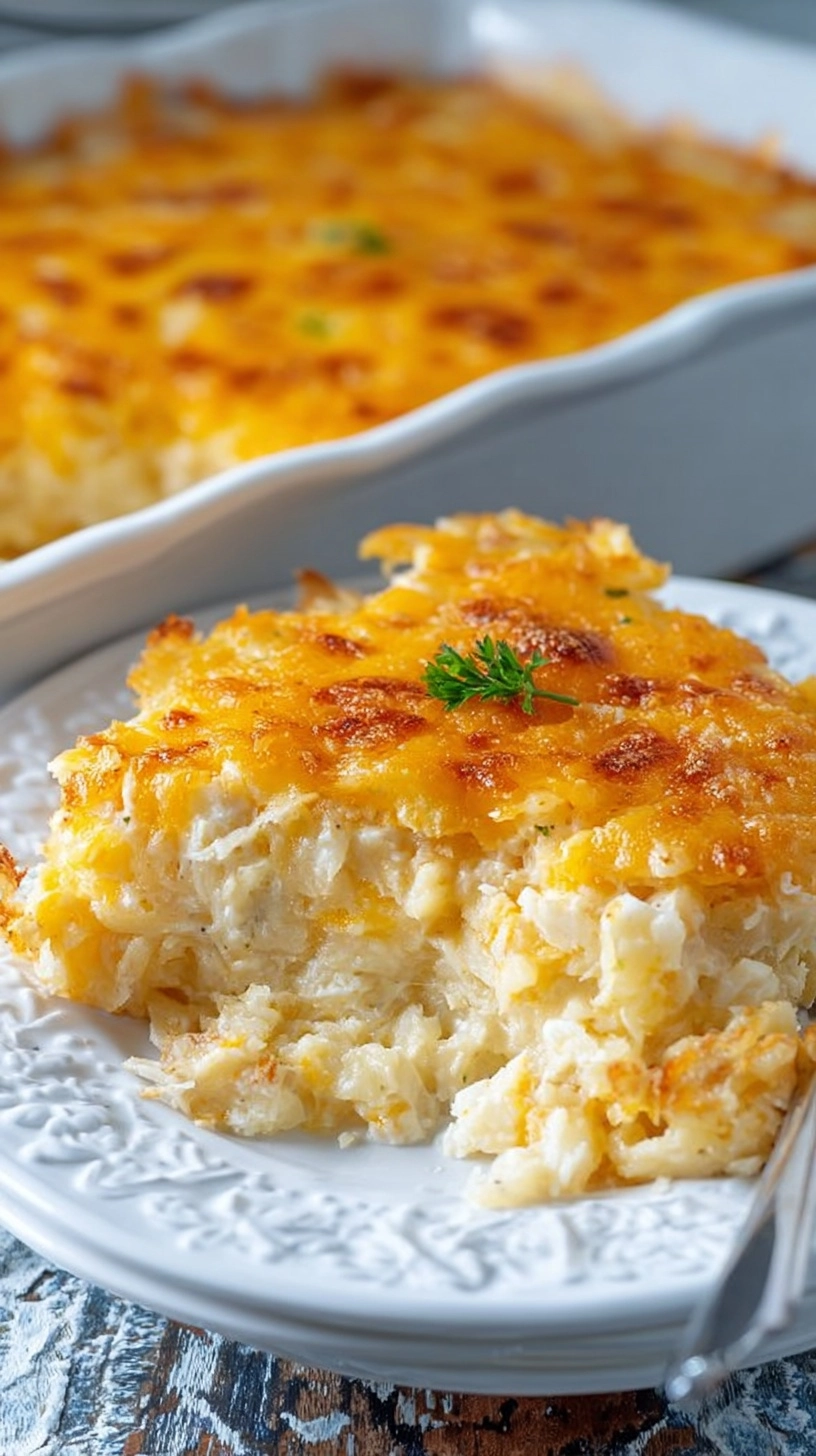 Elevate your Cheesy Hashbrown Casserole presentation by pairing it with complementary textures and flavors. Serve alongside grilled proteins, fresh green salads with vinaigrette dressing, or roasted seasonal vegetables for balanced nutrition. The casserole’s rich, creamy nature pairs beautifully with acidic elements like cranberry sauce or pickled vegetables.