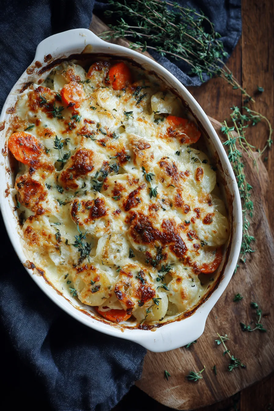 Transform your kitchen into a cozy haven with these carefully selected ingredients for the ultimate Cheesy Root Vegetable Gratin: