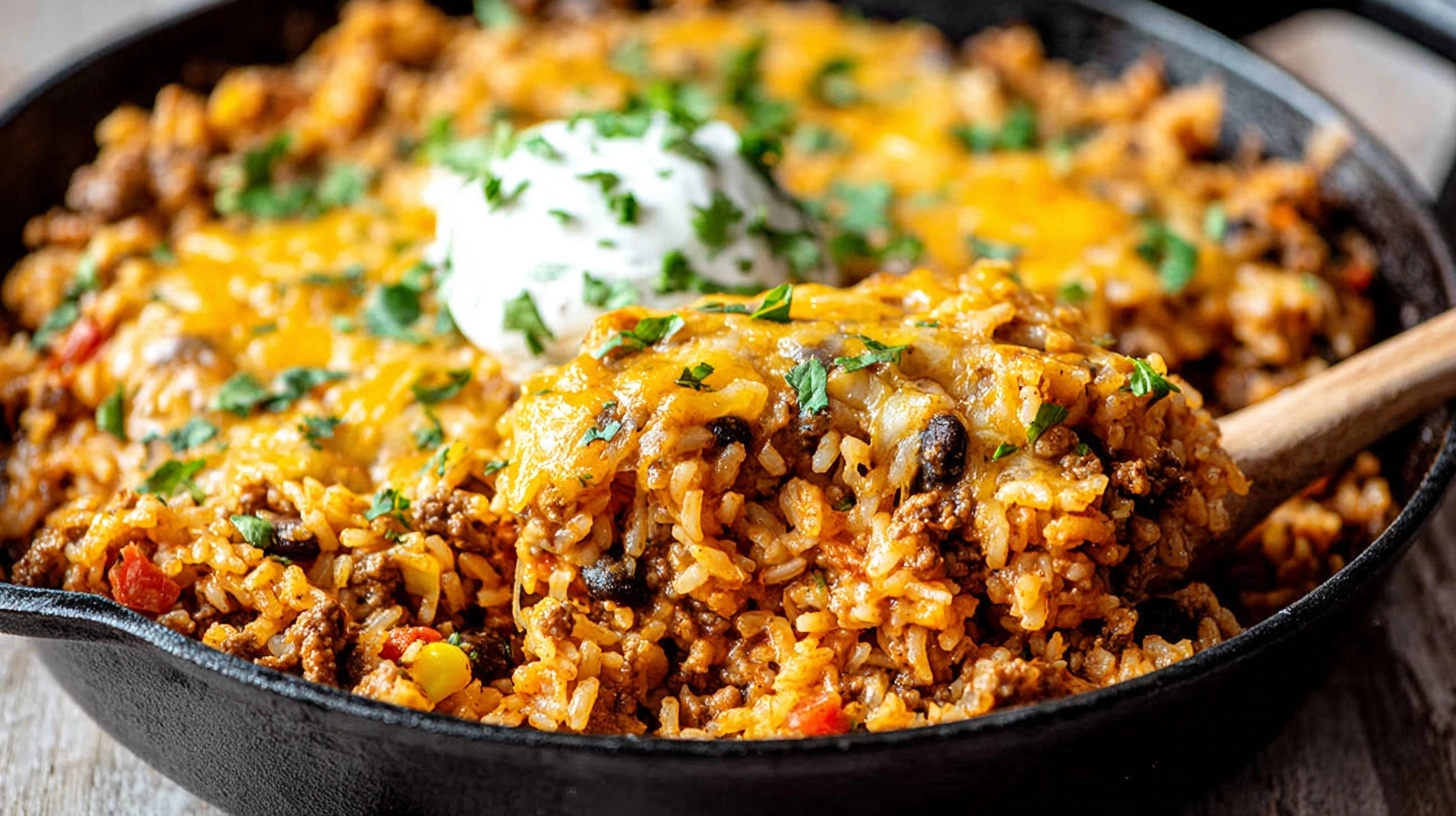 Did you know that 73% of busy families struggle to prepare satisfying weeknight dinners in under 30 minutes? Yet, there’s one game-changing recipe that delivers maximum flavor with minimal effort. Enter the Cheesy Taco Rice Skillet – a one-pan wonder that transforms simple pantry staples into a restaurant-quality meal. This isn’t just another ground beef recipe; it’s a strategic approach to dinner that combines the beloved flavors of tacos with the comfort of melted cheese and fluffy rice, all while requiring just one skillet and roughly 25 minutes of your time.