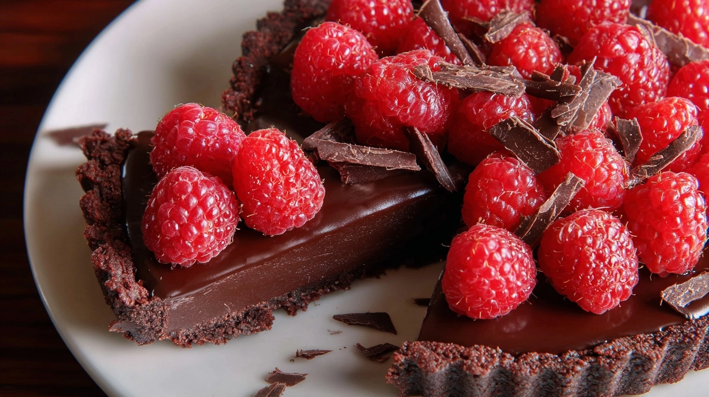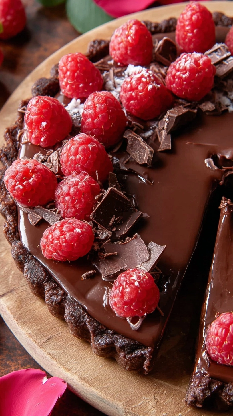 Present your chocolate raspberry tart valentines desserts recipe on white porcelain plates for stunning color contrast. Dust with powdered sugar just before serving, or drizzle raspberry coulis in artistic heart patterns. Pair with vanilla bean ice cream or whipped coconut cream. For elegant dinner parties, cut into small diamonds and serve on vintage silver spoons. Temperature matters—serve slightly cool for firm slicing or room temperature for maximum flavor release.