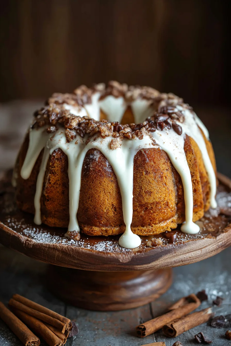 Elevate your Cinnamon Bundt Cake With Cream Cheese Glaze presentation by serving with fresh berries, which provide color contrast and natural acidity that balances the rich sweetness. During autumn, pair with warm apple cider or chai tea for seasonal harmony. For special occasions, dust with additional cinnamon or add toasted pecans to the glaze. Coffee lovers will appreciate how this cake complements both espresso and lighter breakfast blends. Consider serving smaller portions alongside vanilla ice cream for an elevated dessert experience that guests remember long after the last bite.