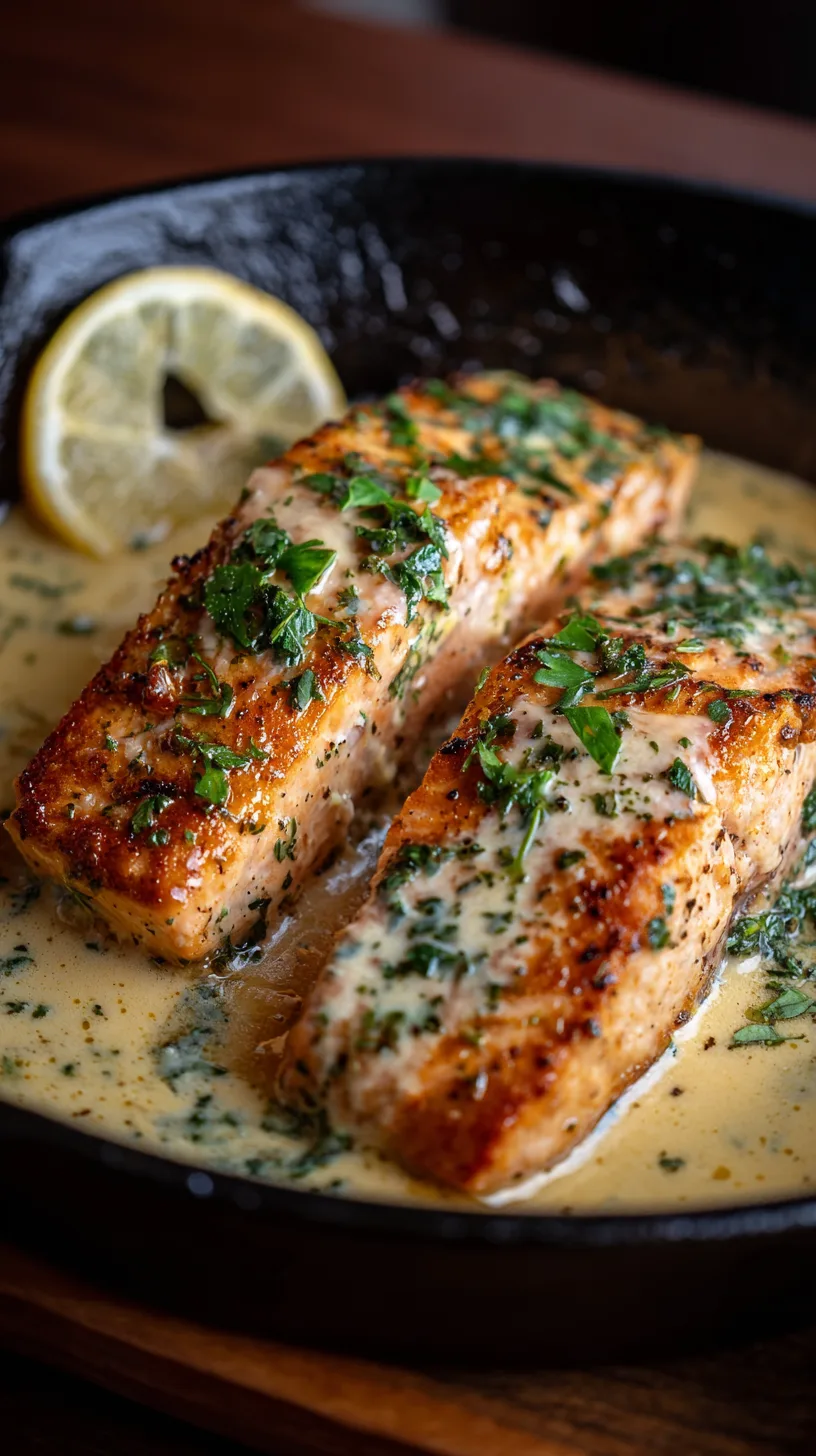 Return salmon to the skillet, spooning the creamy sauce over each fillet. Garnish with fresh parsley and serve immediately while the sauce is silky and warm.