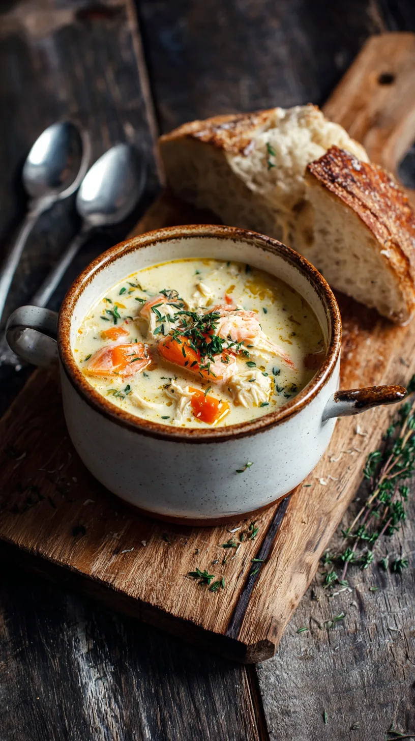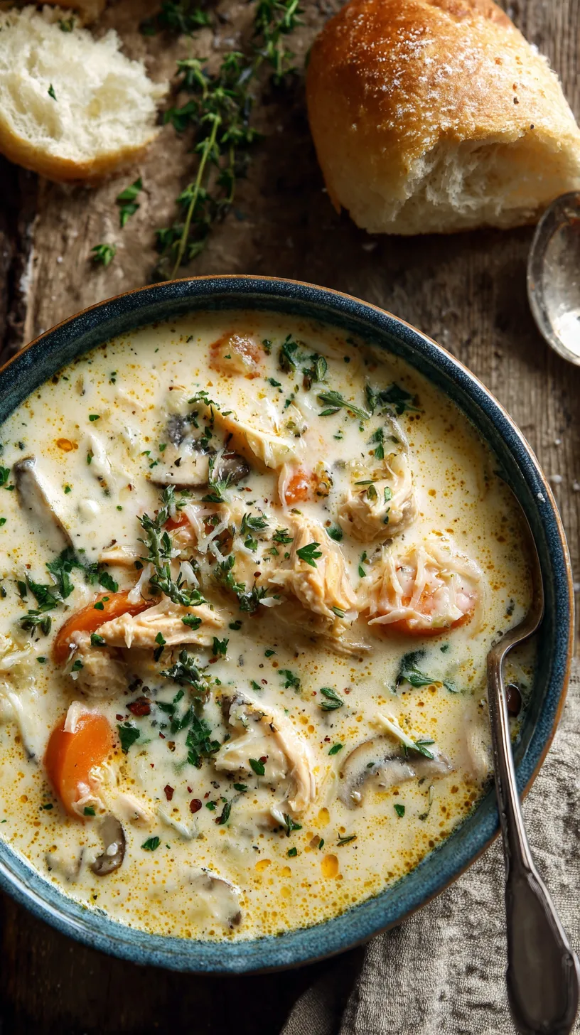 Serve this luxurious soup in warmed bowls with crusty sourdough bread or garlic-rubbed baguette slices. For an elegant presentation, drizzle with extra virgin olive oil and sprinkle fresh thyme leaves.