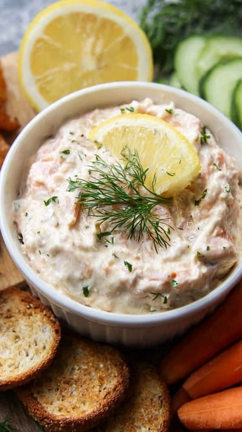 Elevate your presentation by serving this Creamy Smoked Salmon Dip with Fresh Lemon alongside toasted baguette slices, everything bagel chips, or crisp cucumber rounds for a refreshing crunch. For elegant entertaining, hollow out small cherry tomatoes or endive leaves for individual appetizer portions.