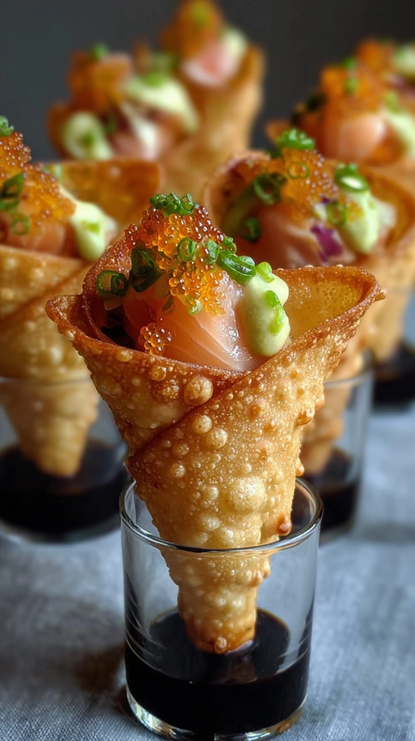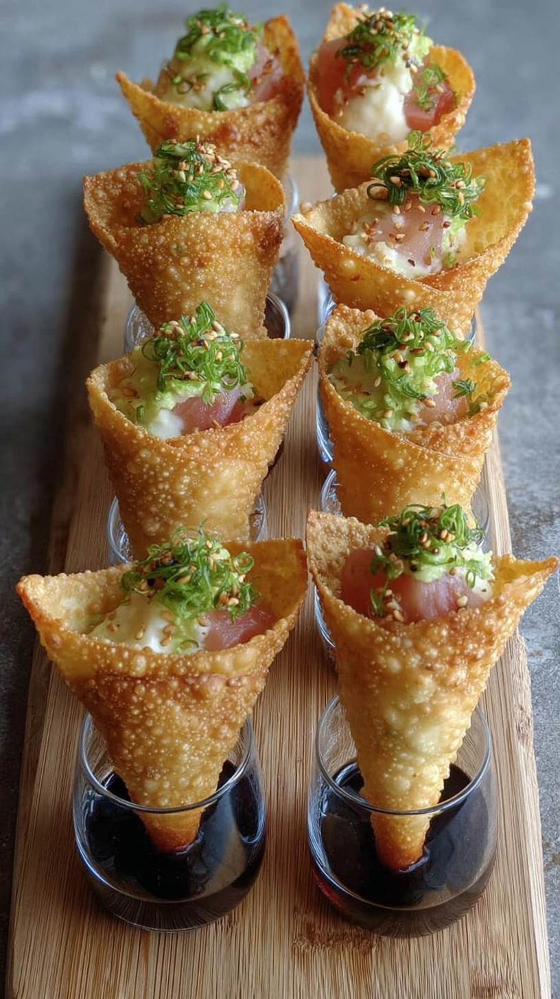 These creative sushi wonton cones represent the perfect fusion of convenience and sophistication, proving that restaurant-quality appetizers are achievable in any home kitchen with the right technique and fresh ingredients.