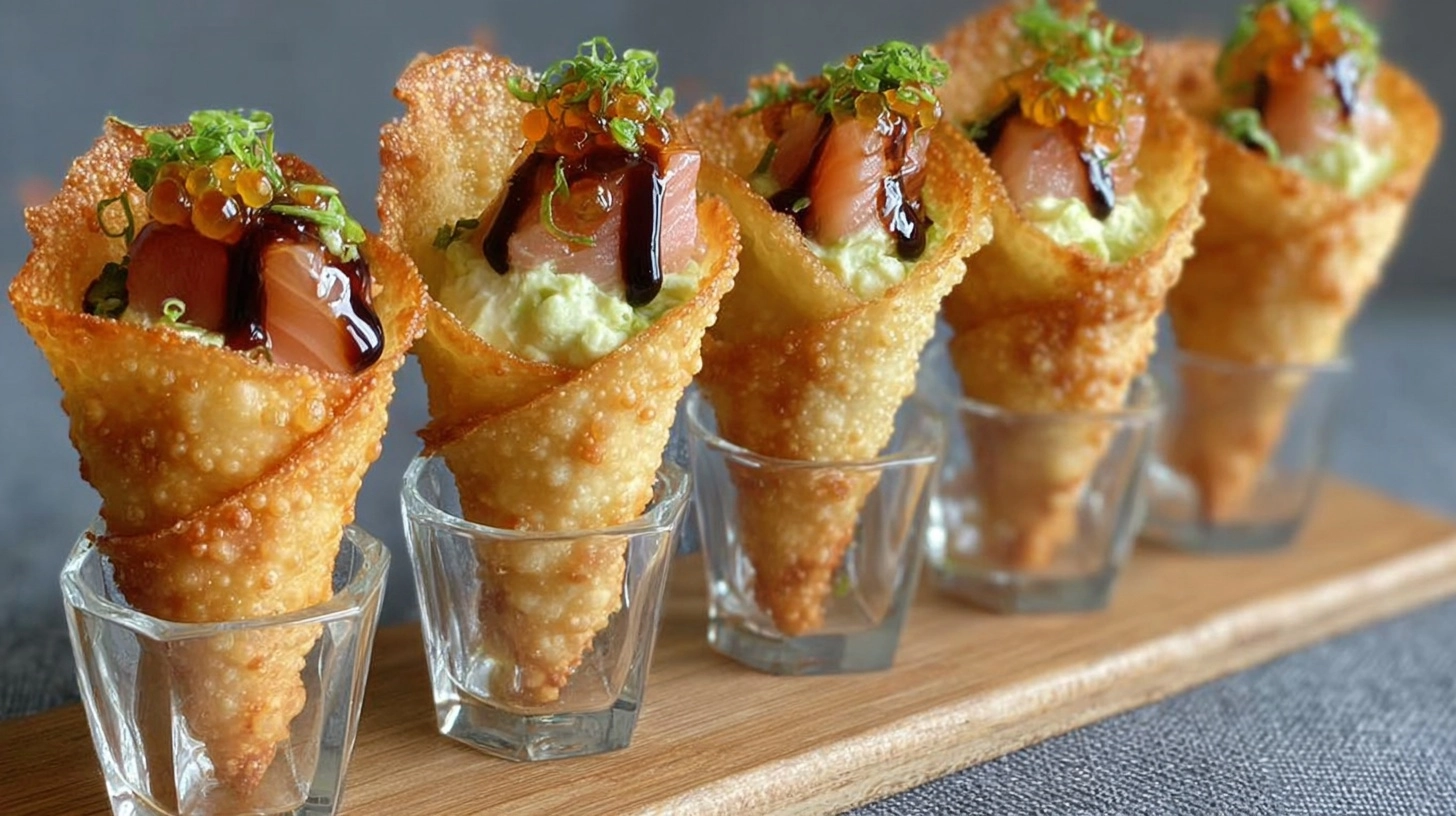 Did you know that 73% of home cooks struggle to create restaurant-quality appetizers that balance texture and flavor? Most traditional appetizers either lack the wow factor or require hours of preparation that intimidate even experienced home chefs. Today, we’re breaking that mold with Creative Sushi Wonton Cones: Crispy, Creamy Appetizer Delight – a fusion masterpiece that combines the best of Asian culinary traditions into bite-sized perfection. These innovative cones deliver the satisfying crunch of perfectly fried wontons filled with creamy, sushi-inspired goodness that will transform your next gathering into an unforgettable culinary experience. What makes this recipe revolutionary is its ability to capture complex flavors in just 45 minutes, proving that sophisticated appetizers don’t require professional training or exotic equipment.