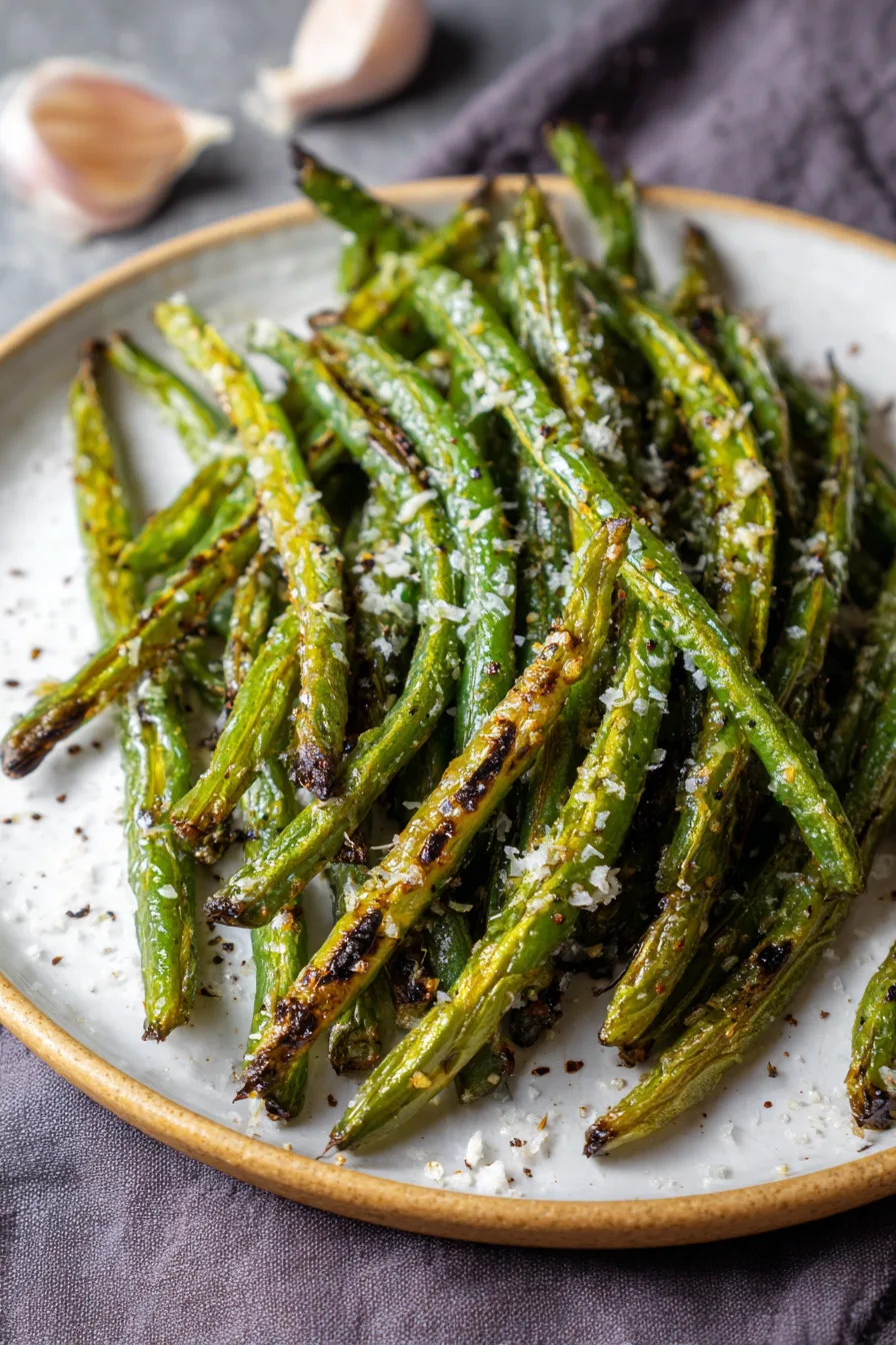 Remove the baking sheet from the oven and sprinkle freshly grated Parmesan evenly over the beans. Return to the oven for an additional 5-8 minutes until the cheese becomes golden and slightly crispy while the beans reach perfect tenderness.