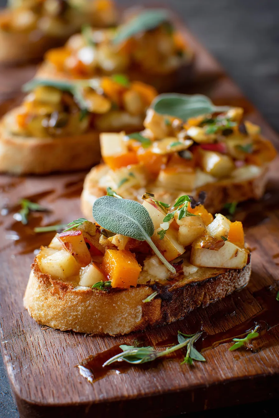 Each serving of this Delicious Fall Bruschetta with Butternut Squash and Apples delivers approximately 245 calories while providing exceptional nutritional value. The butternut squash contributes over 400% of your daily vitamin A needs, supporting eye health and immune function. With 6 grams of fiber per serving, this appetizer supports digestive health while keeping you satisfied. The walnuts add heart-healthy omega-3 fatty acids, while the apples provide quercetin, a powerful antioxidant. Compared to traditional bruschetta, this version offers 60% more vitamins and minerals while maintaining similar caloric content.