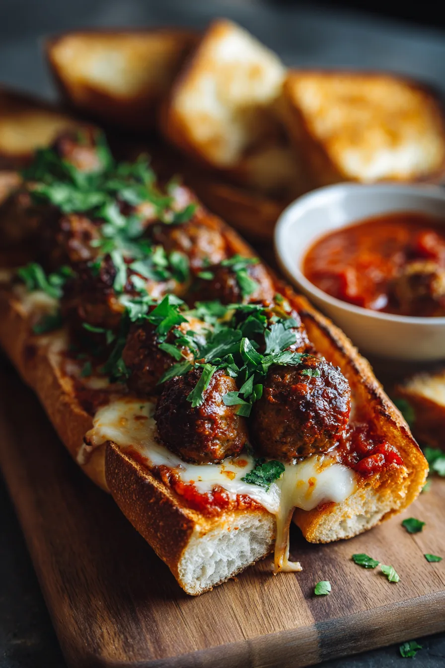 Elevate your Cheesy Meatball Subs with thoughtfully chosen accompaniments that complement rather than compete. Serve alongside crispy sweet potato fries seasoned with herbs, or offer a refreshing arugula salad dressed with lemon vinaigrette to cut through the richness. For casual gatherings, cut subs into smaller portions and serve as appetizers with dipping bowls of extra marinara sauce. Consider pairing with homemade pickles or roasted vegetables for a complete, satisfying meal.