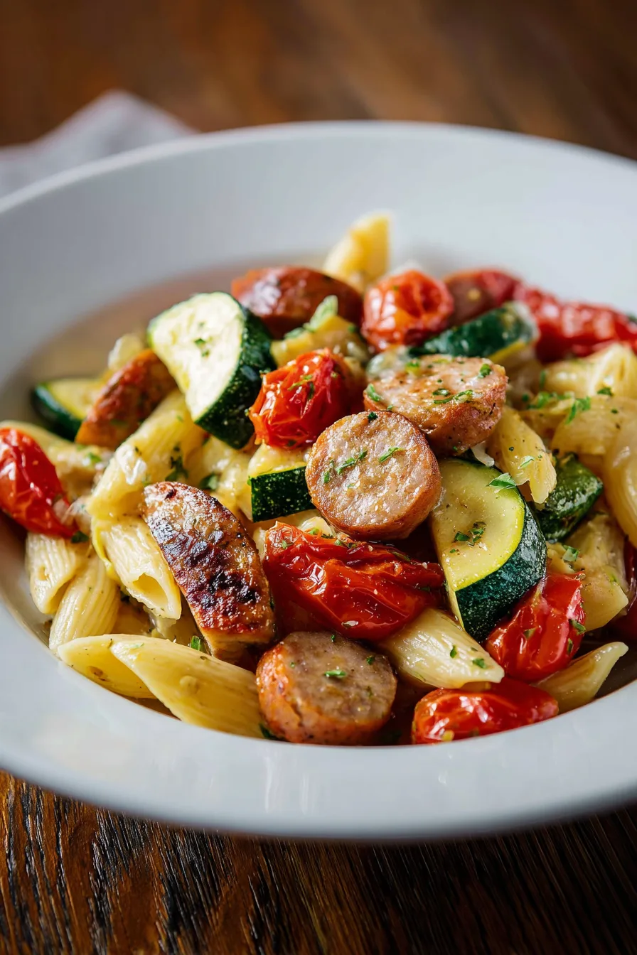 Meal Prep Strategy: Cook sausage and vegetables ahead of time, storing separately from pasta. Combine and reheat when ready to serve for best texture maintenance.