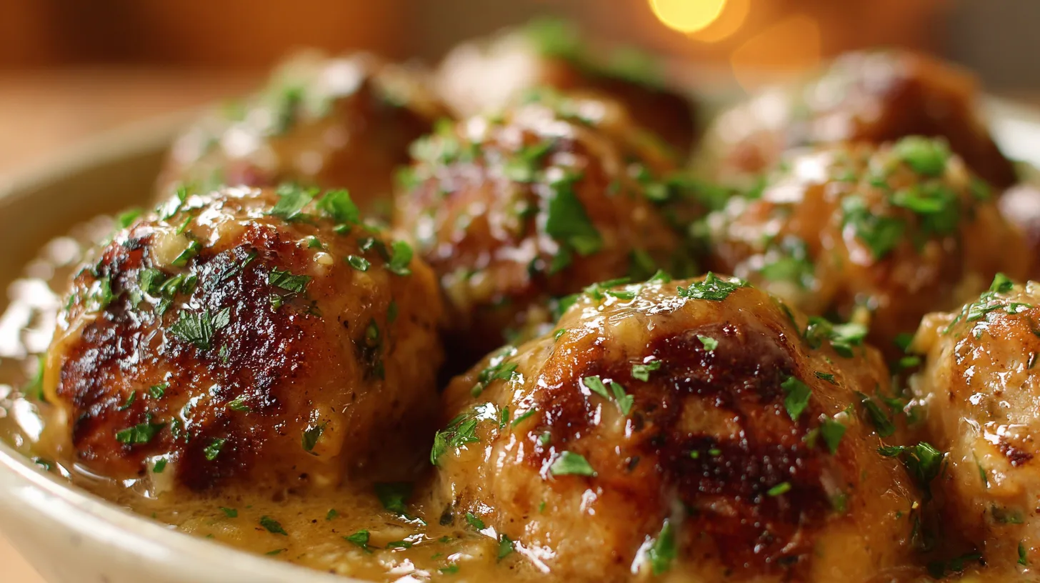 Serve these Crockpot French Onion Meatballs over creamy mashed potatoes, buttered egg noodles, or crusty artisan bread for authentic French bistro vibes. For elegant entertaining, present them as appetizers with toothpicks alongside crusty baguette slices. Health-conscious diners will appreciate them over zucchini noodles or quinoa, while cheese lovers can broil additional Gruyère on top for an irresistible golden crust.