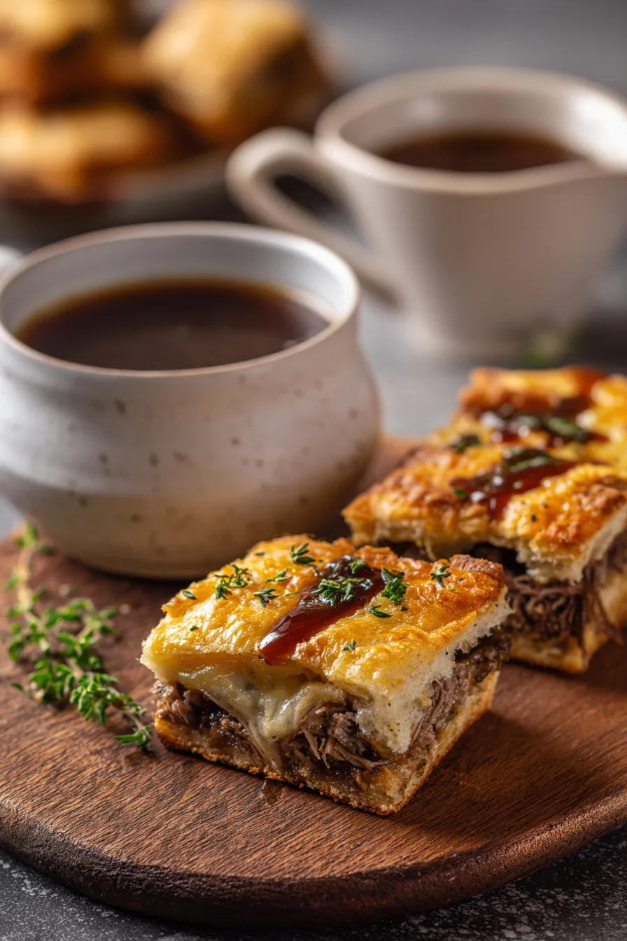 Elevate your Delicious French Dip Squares Recipe with these crowd-pleasing presentation ideas: