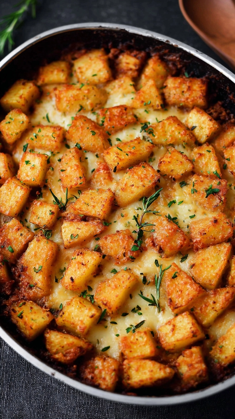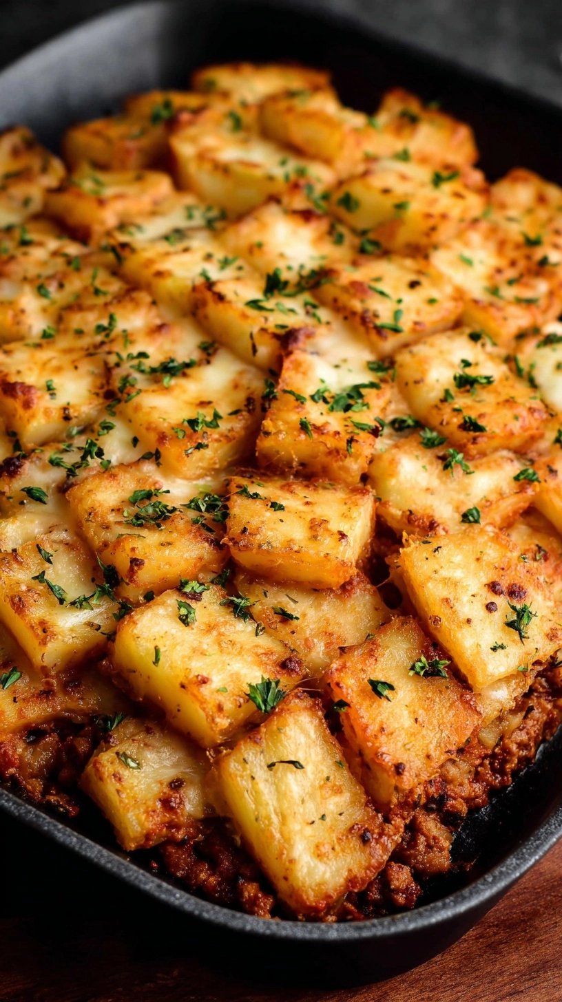 Cover with foil and bake 45 minutes. Remove foil and continue baking 15 minutes until cheese is golden and bubbly. Internal temperature should reach 165°F for food safety. Let rest 15 minutes before cutting to allow layers to set properly.
