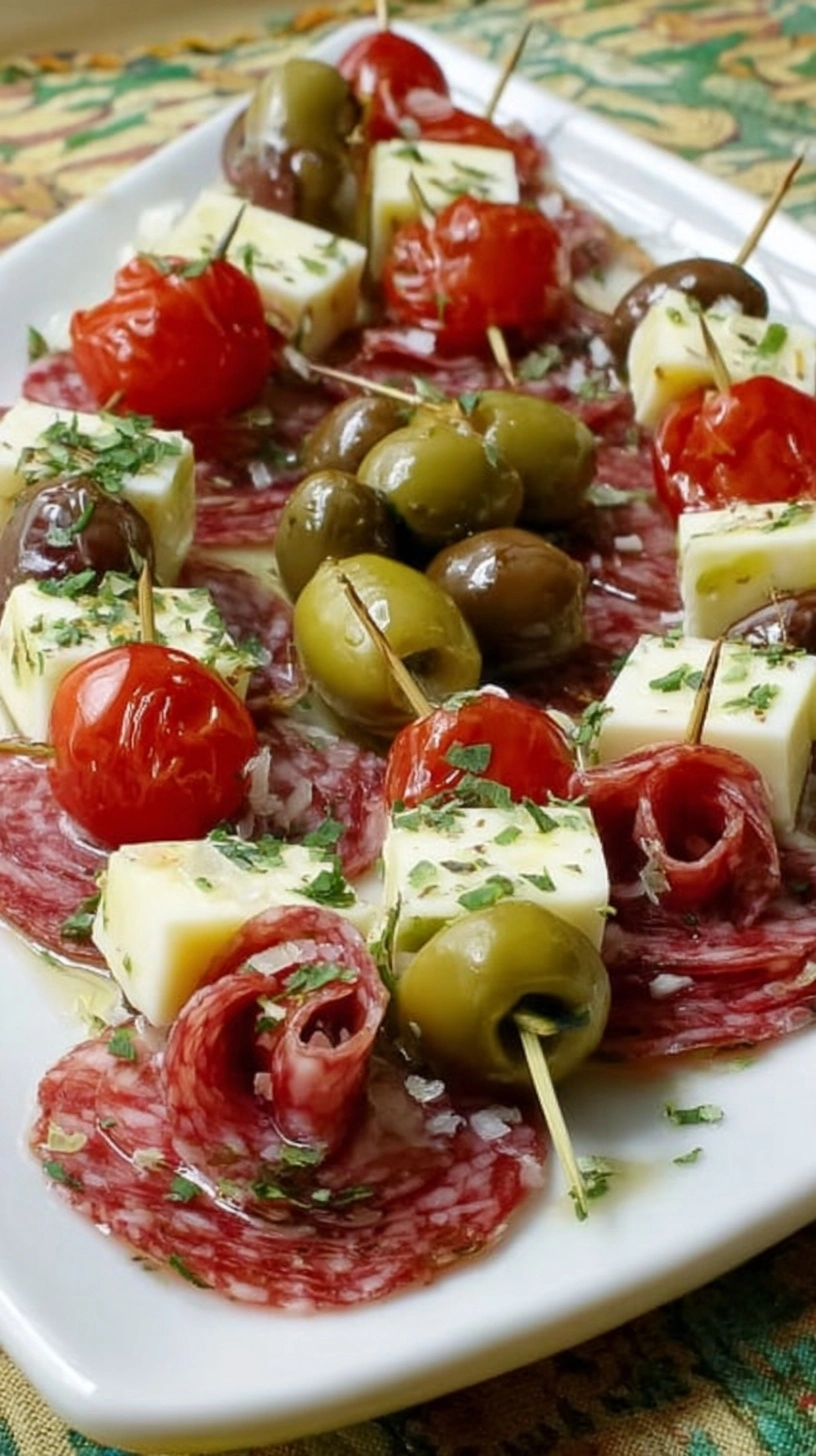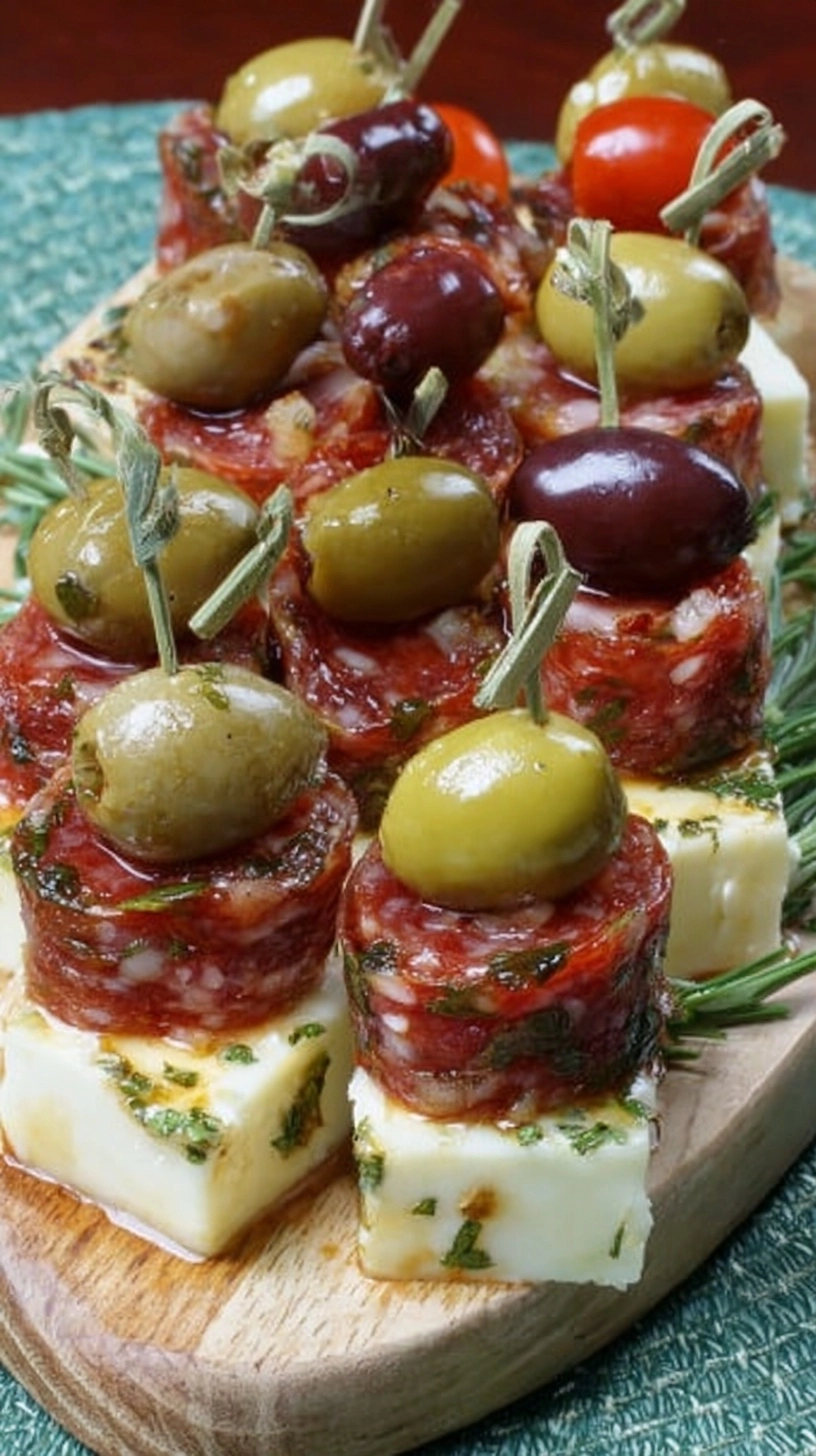 Substitution Suggestions: Swap mozzarella for goat cheese cubes for tanginess, use turkey salami for a leaner option, or replace green olives with Kalamata olives for a more robust flavor profile.