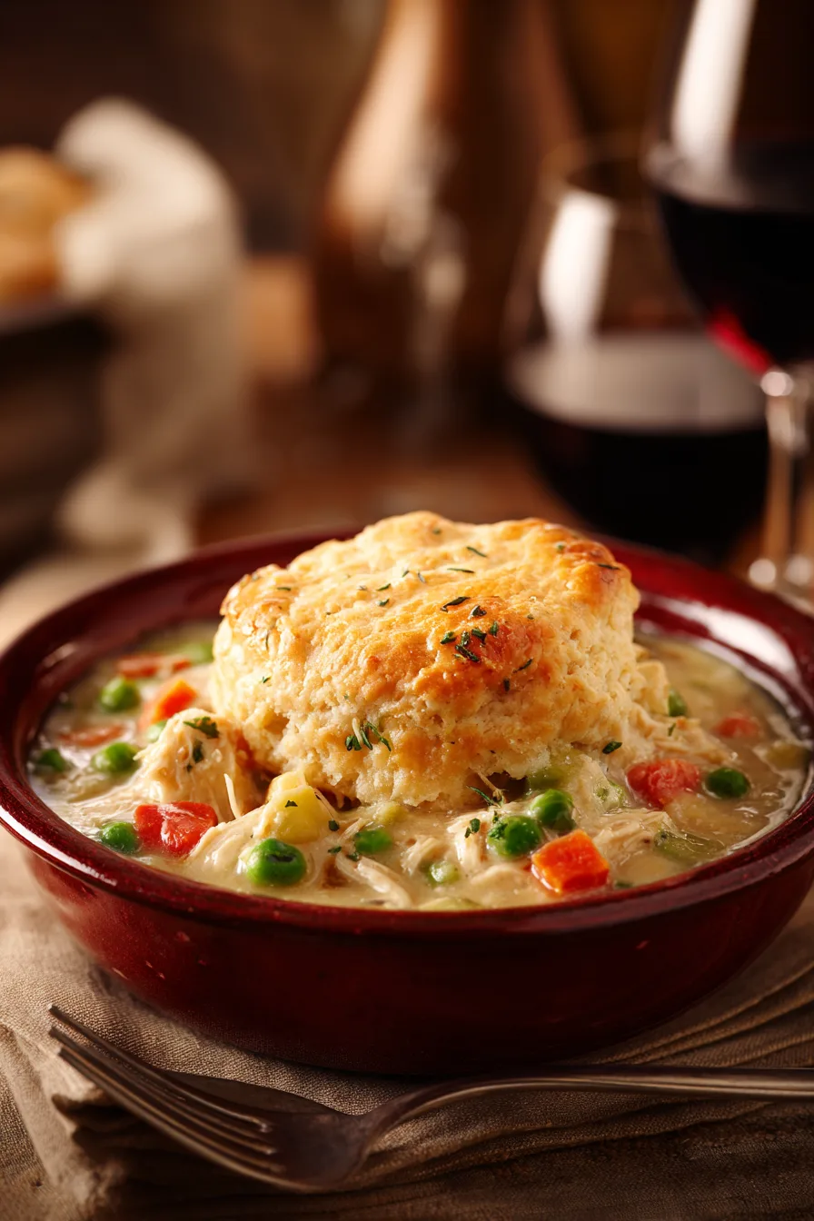 Overmixing the biscuit dough is the most frequent error, resulting in tough, dense tops instead of fluffy perfection. Mix just until ingredients come together. Using warm ingredients for biscuits prevents proper rise—keep butter and buttermilk cold. Skipping the chicken searing step eliminates crucial flavor development that sets this recipe apart. Underthickening the filling leads to soggy biscuits, so ensure your roux cooks properly and filling bubbles before adding the topping.