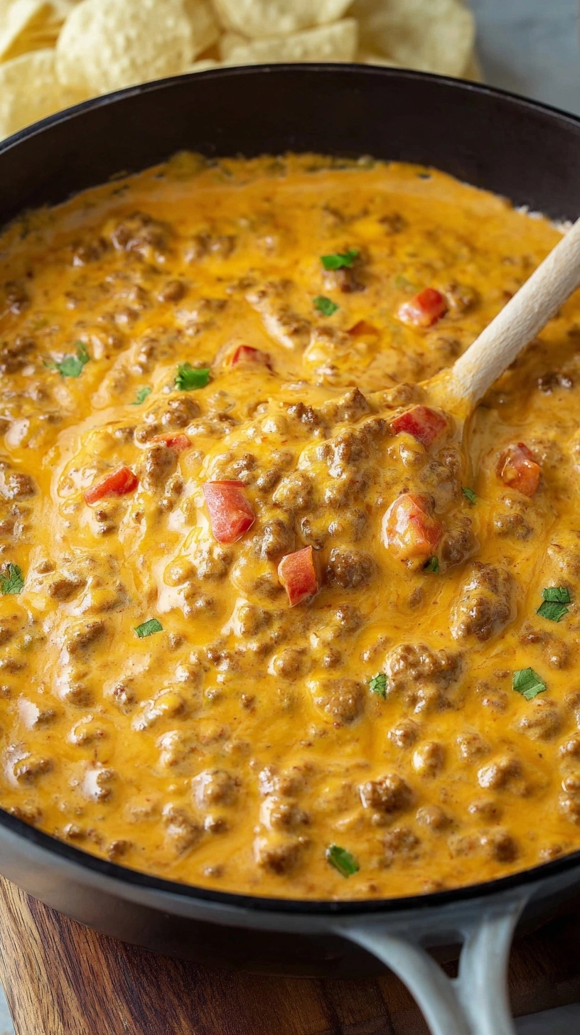 Keep the dip warm in a slow cooker set to “warm” setting for parties lasting longer than 2 hours. Garnish with fresh chopped cilantro, diced tomatoes, or sliced green onions for visual appeal and fresh flavor contrast.