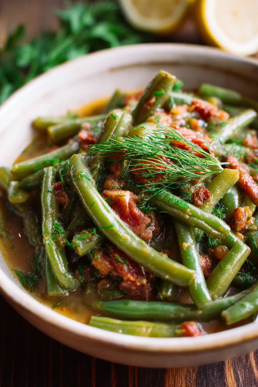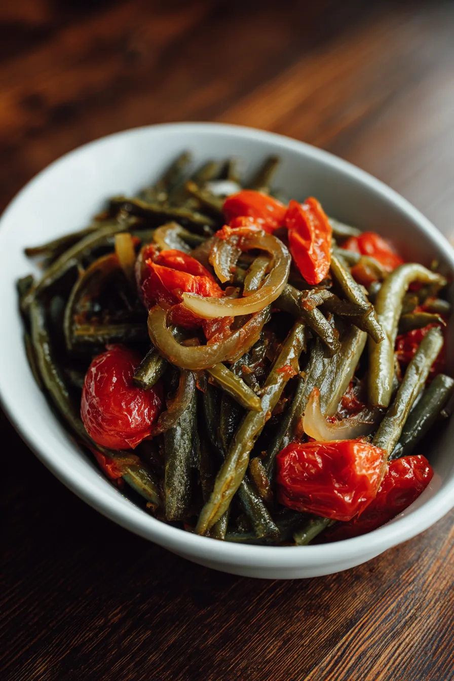 Remove the bay leaf and taste your smothered green beans. Adjust seasoning with salt, pepper, and a splash of balsamic vinegar if desired. The final dish should have a rich, slightly thickened cooking liquid that coats the beans beautifully. Let rest for 5 minutes before serving to allow flavors to meld completely.