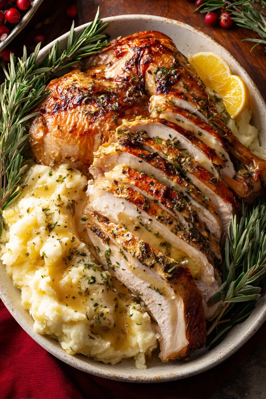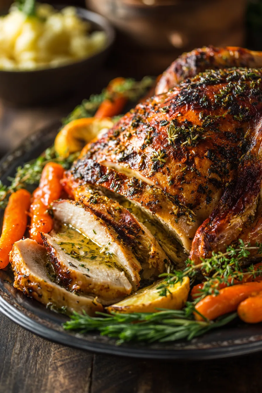 Enhance the dining experience by preparing a cranberry-orange relish that complements the herb flavors, or serve with a warm quinoa stuffing featuring dried fruits and nuts. The rich, buttery turkey pairs beautifully with lighter sides like steamed green beans almondine or a fresh arugula salad with pomegranate seeds.