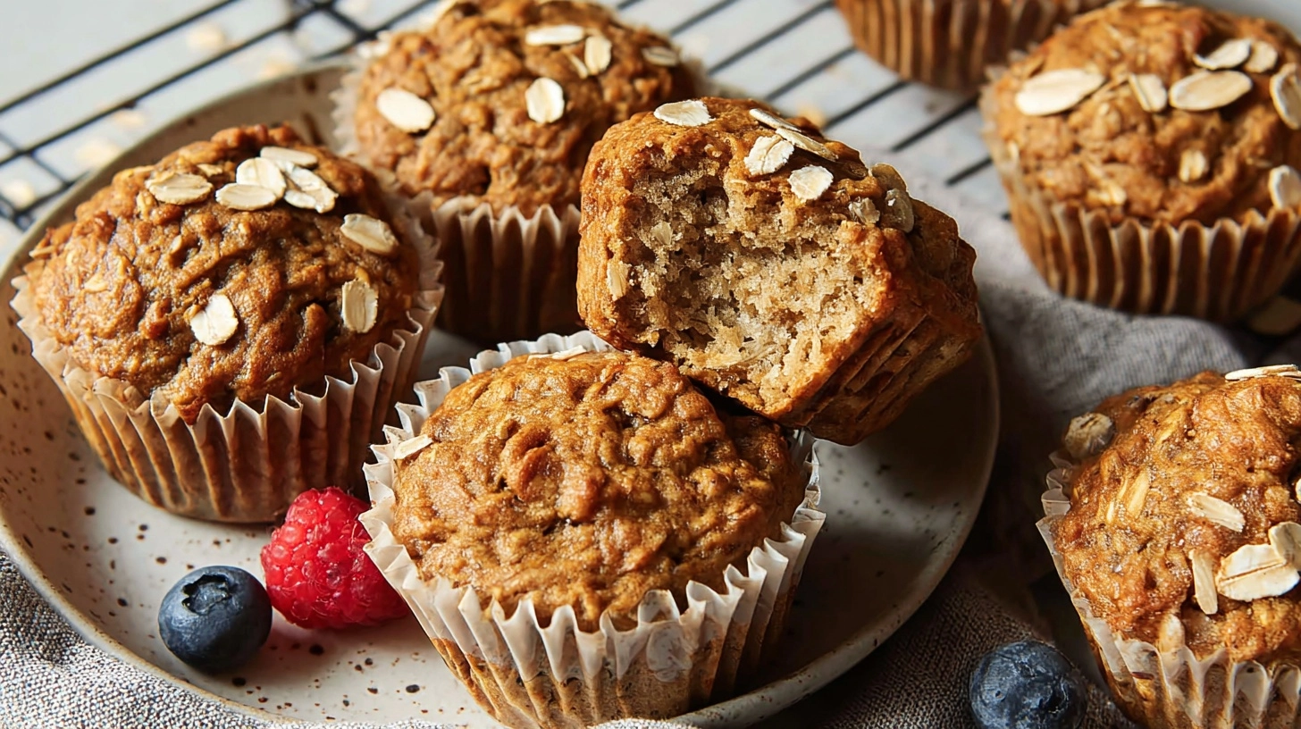 These muffins provide 15% of your daily fiber needs and contain natural potassium from bananas, supporting heart health and muscle function. The oats contribute beta-glucan fiber, which helps stabilize blood sugar levels.