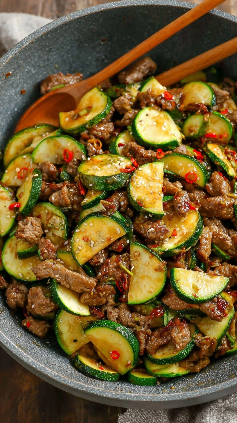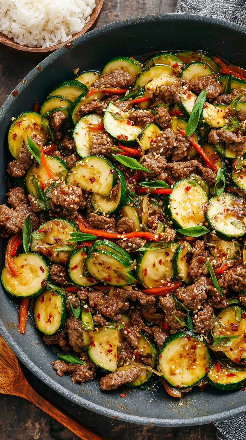 Serve your Healthy Zucchini Beef Stir-fry In Minutes over cauliflower rice for a low-carb powerhouse, or pair with quinoa for complete amino acids. For texture contrast, add toasted cashews or almonds as a final garnish.