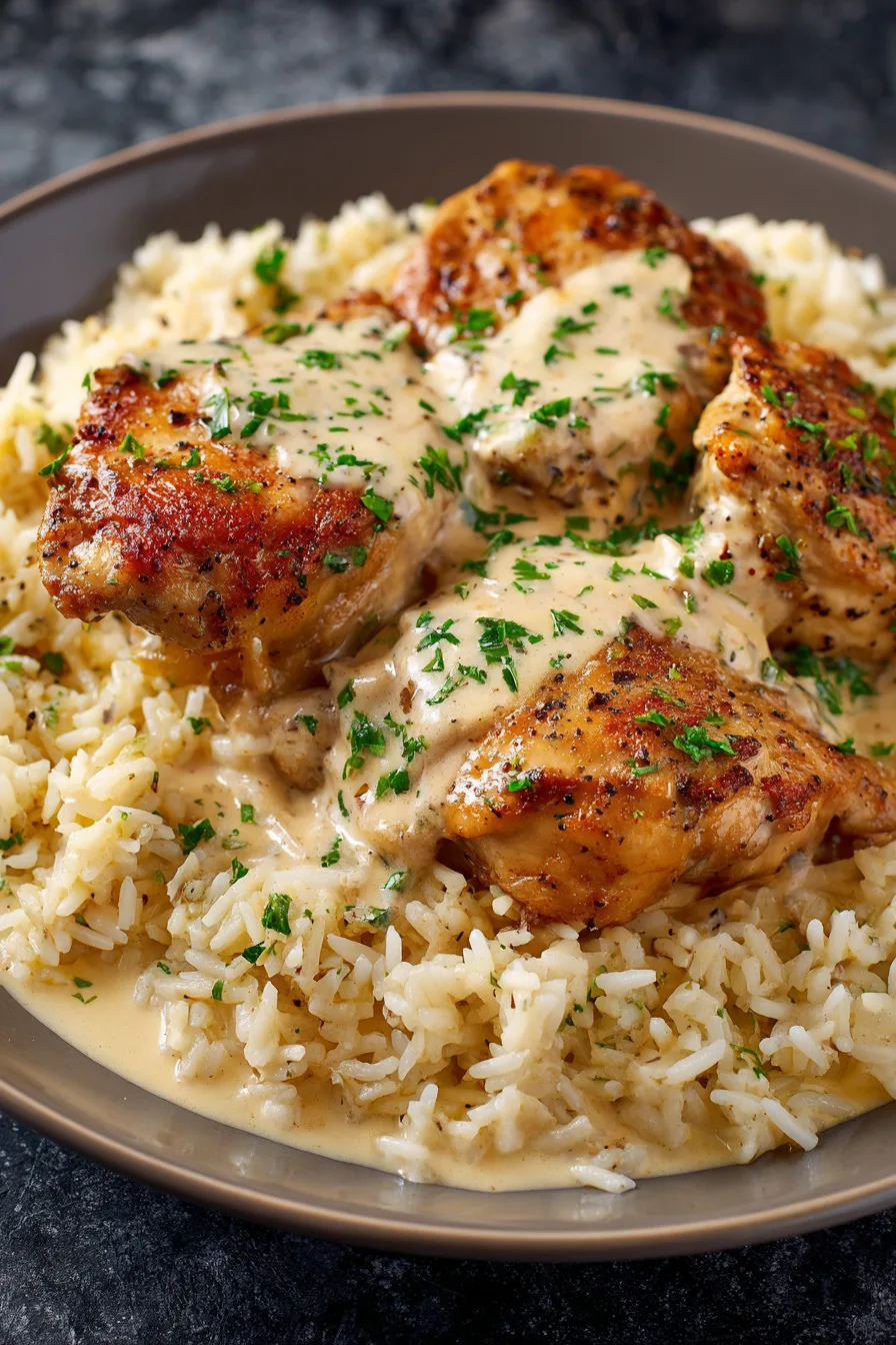 Transform your kitchen into a culinary haven with these carefully selected ingredients for creamy smothered chicken and rice: