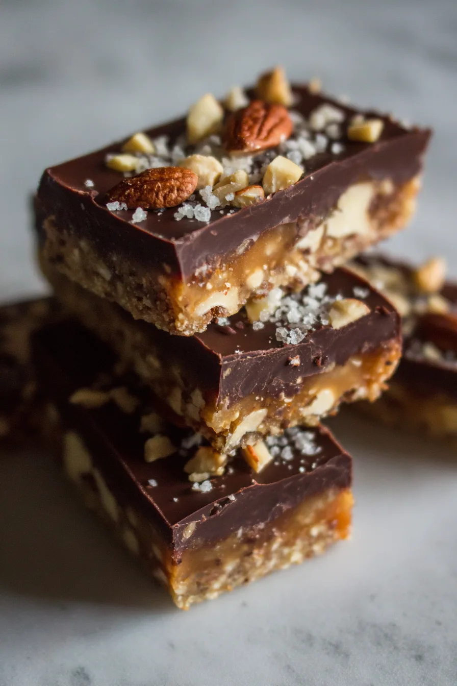Pour melted chocolate over chilled nut base, spreading evenly with an offset spatula. Immediately sprinkle with flaky sea salt while chocolate is still warm – this ensures proper adhesion. The contrast of textures creates the signature “flavor pop” these bars are known for.