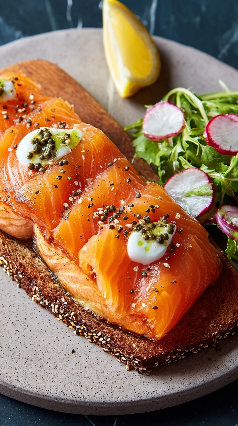 Remove the smoked salmon when it flakes easily with a fork and has developed a beautiful amber color. Allow it to rest for 15 minutes before slicing. This resting period redistributes juices and firms the texture for clean, professional-looking cuts.