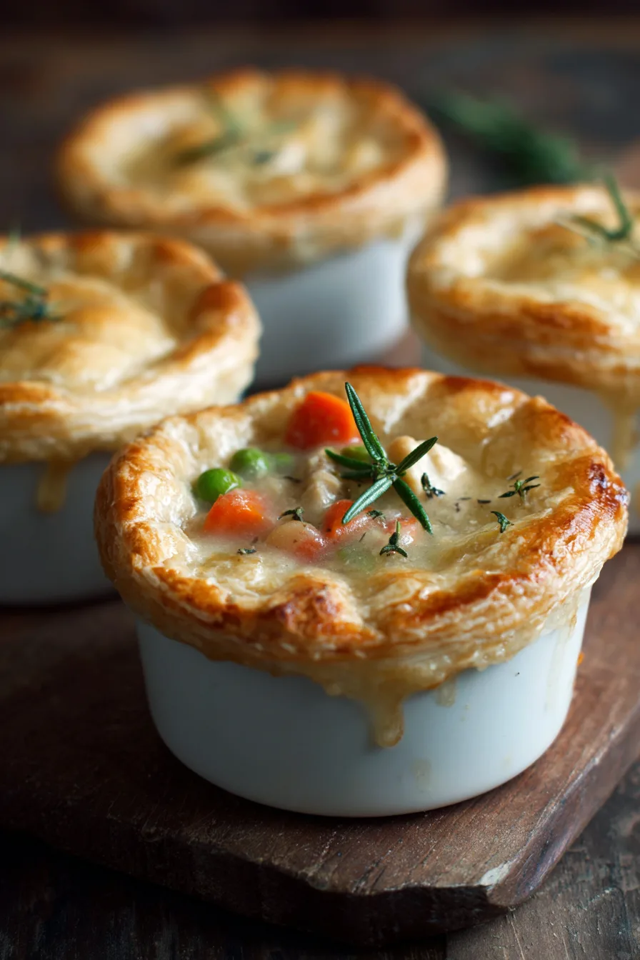 Create a “pot pie bar” by offering various toppings like hot sauce, fresh herbs, or cranberry sauce for personalization. They’re also perfect for meal prep – wrap individually and freeze for convenient grab-and-go lunches that reheat beautifully in the oven.
