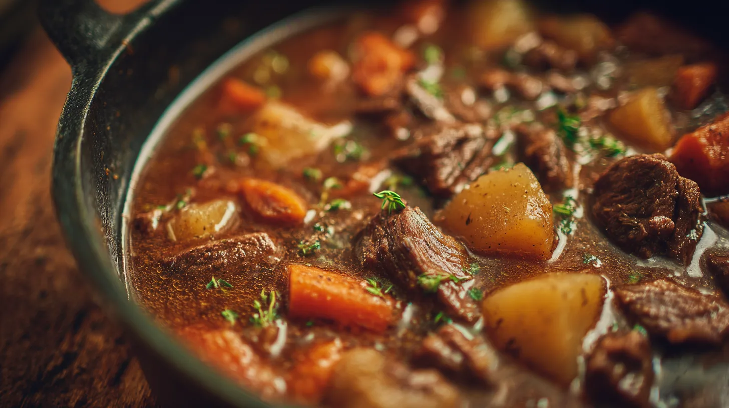 How do I thicken the stew if it’s too watery? Mix 2 tablespoons cornstarch with cold water to create a slurry, then stir into the simmering stew. Alternatively, mash a few potato pieces against the pot’s side.