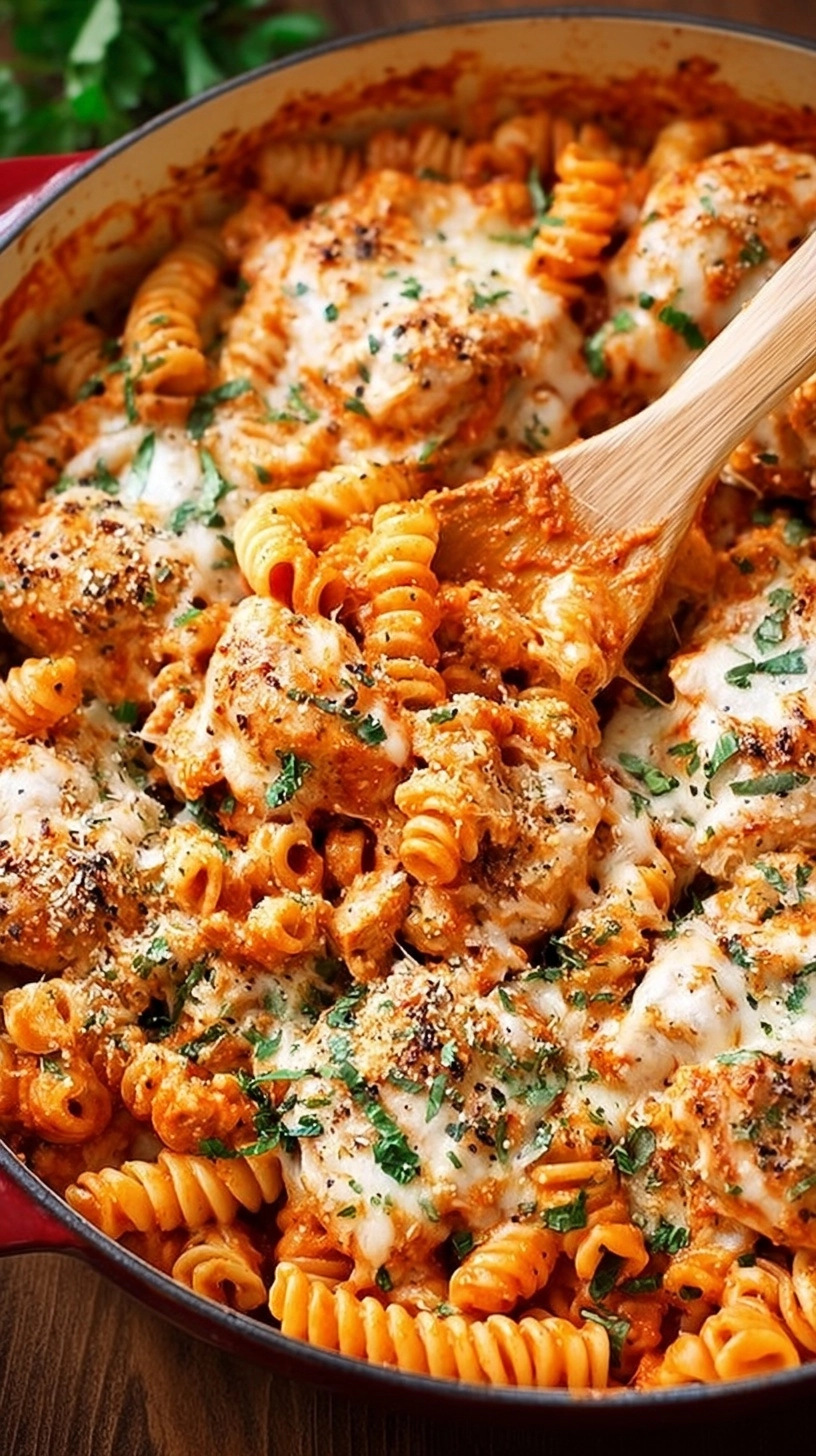 Elevate your One Pot Chicken Parmesan Pasta presentation by serving in warmed bowls with a side of garlic-rubbed crusty bread for sauce-sopping satisfaction. A crisp Caesar salad provides textural contrast and fresh vegetables that complement the rich, cheesy flavors beautifully. For special occasions, garnish with microgreens and a drizzle of high-quality olive oil for restaurant-worthy plating that impresses family and guests alike.