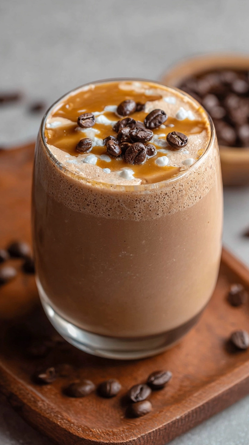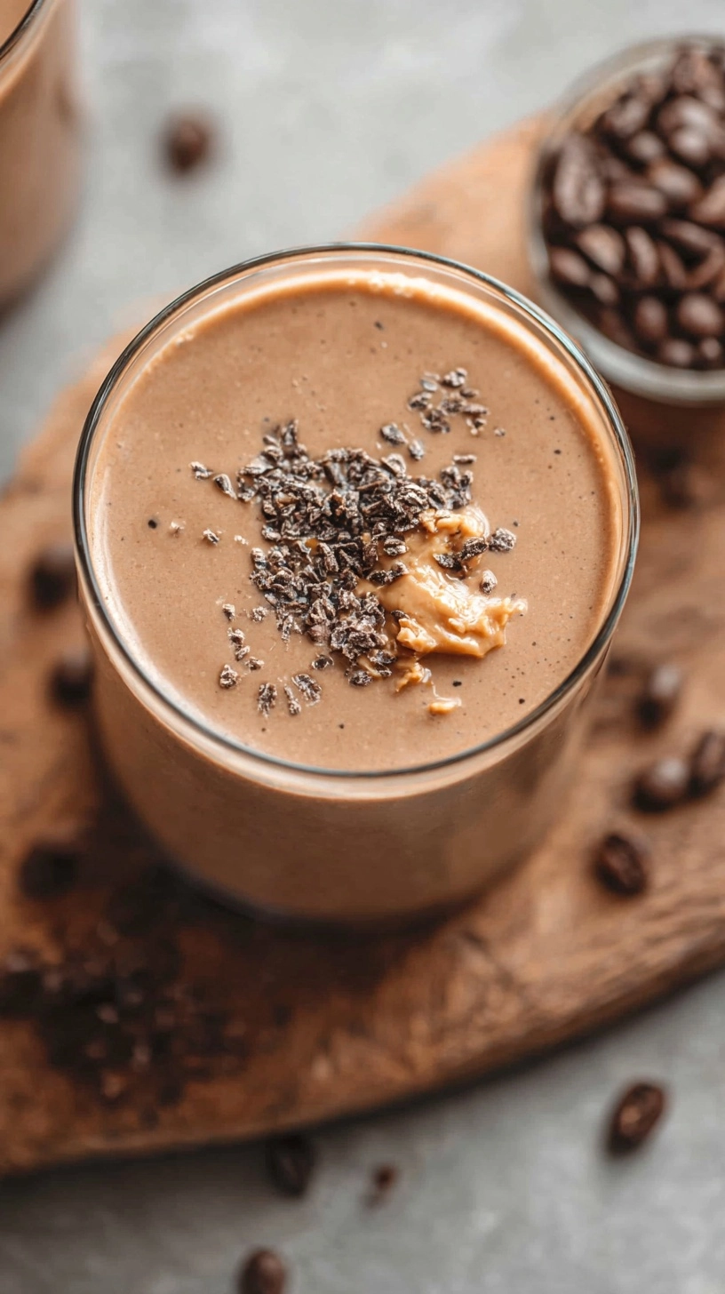 Serve your peanut butter coffee smoothie in chilled glasses topped with a light dusting of cinnamon and crushed peanuts for textural contrast. A coffee bean garnish adds visual appeal and aromatic enhancement.
