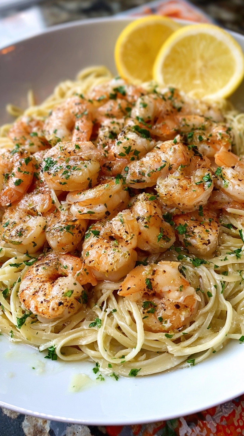 Present your perfect shrimp scampi for any occasion family-style in a large, warmed serving bowl, allowing the aromatic steam to create an immediate sensory experience. Pair with a crisp arugula salad dressed with lemon vinaigrette to cut through the richness, and warm, crusty sourdough bread for sopping up every drop of that precious sauce. For special occasions, serve in individual pasta bowls garnished with extra lemon wedges and fresh herb sprigs. The dish pairs beautifully with roasted asparagus or steamed broccoli for added color and nutrition.
