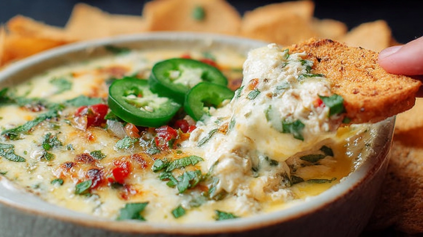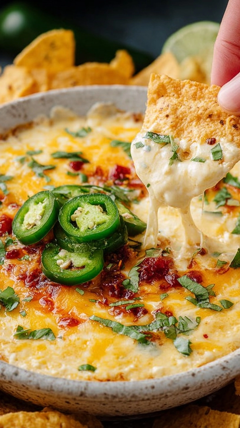 Classic Pairing: Serve with warm tortilla chips, pretzel bites, and fresh vegetable crudité including bell pepper strips, cucumber rounds, and cherry tomatoes for color contrast and nutritional balance.
