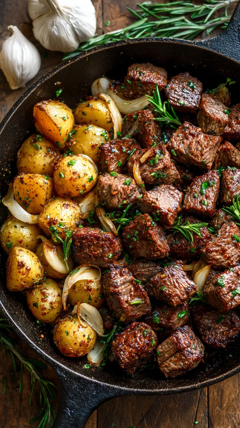 This Quick Irresistible Garlic Steak Bites and Potatoes recipe proves that exceptional meals don’t require extensive time or complicated techniques. With perfectly seared steak, crispy potatoes, and aromatic garlic, you’ll create a restaurant-quality experience in your own kitchen. The versatility and quick preparation make this a go-to recipe for any occasion.