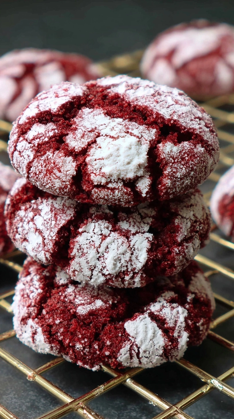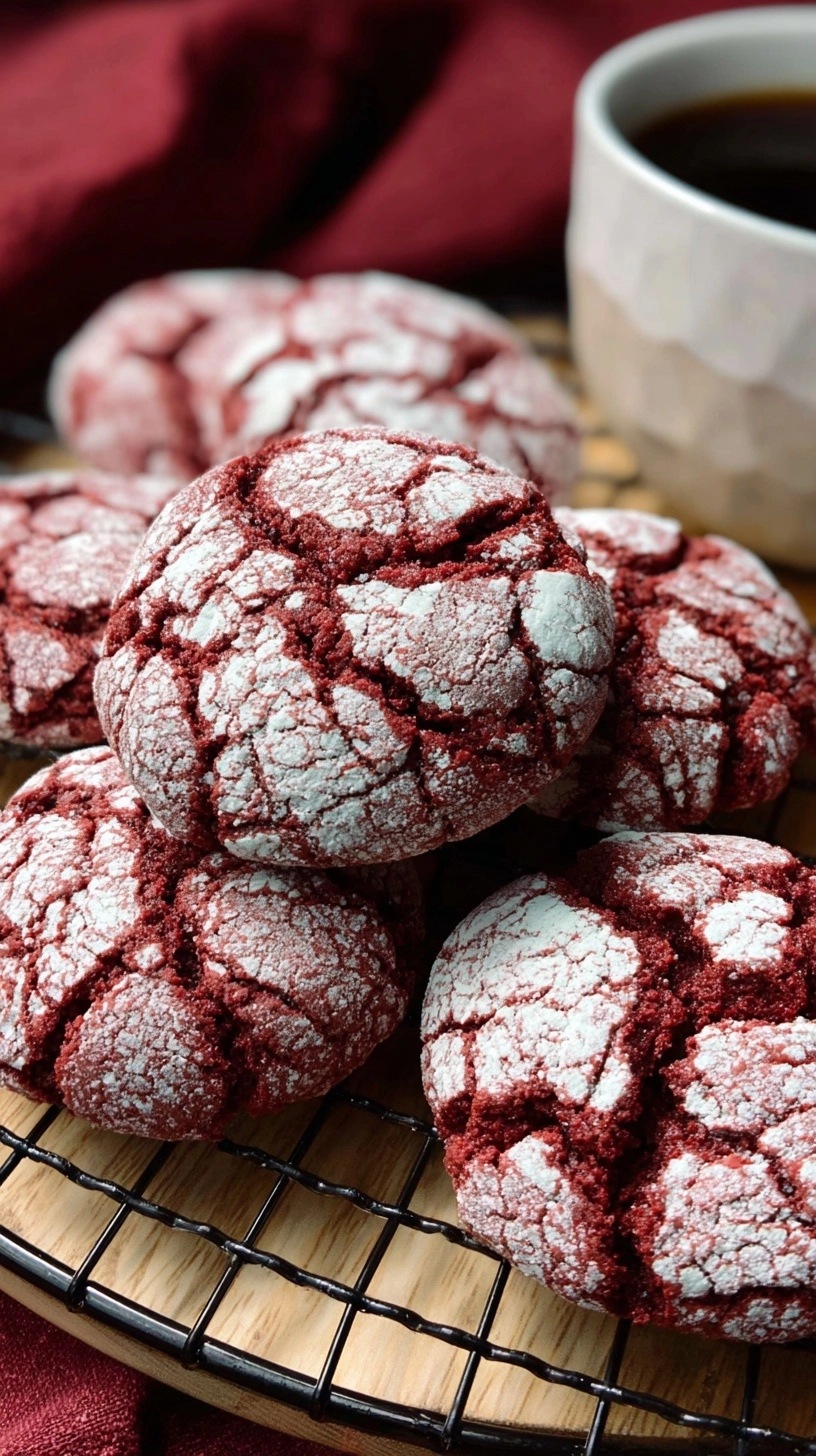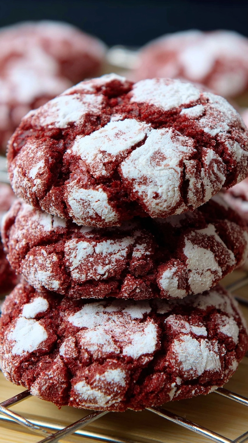 Present your red velvet crinkle cookies on white or silver platters to emphasize their dramatic color contrast. Pair with cold milk, hot chocolate, or coffee for classic combinations that enhance the cocoa notes. During holidays, create cookie gift boxes lined with festive tissue paper for memorable presentations.