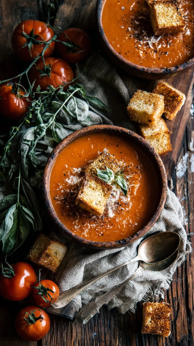 Elevate your Roasted Tomato Basil Soup presentation with these inspired pairings: