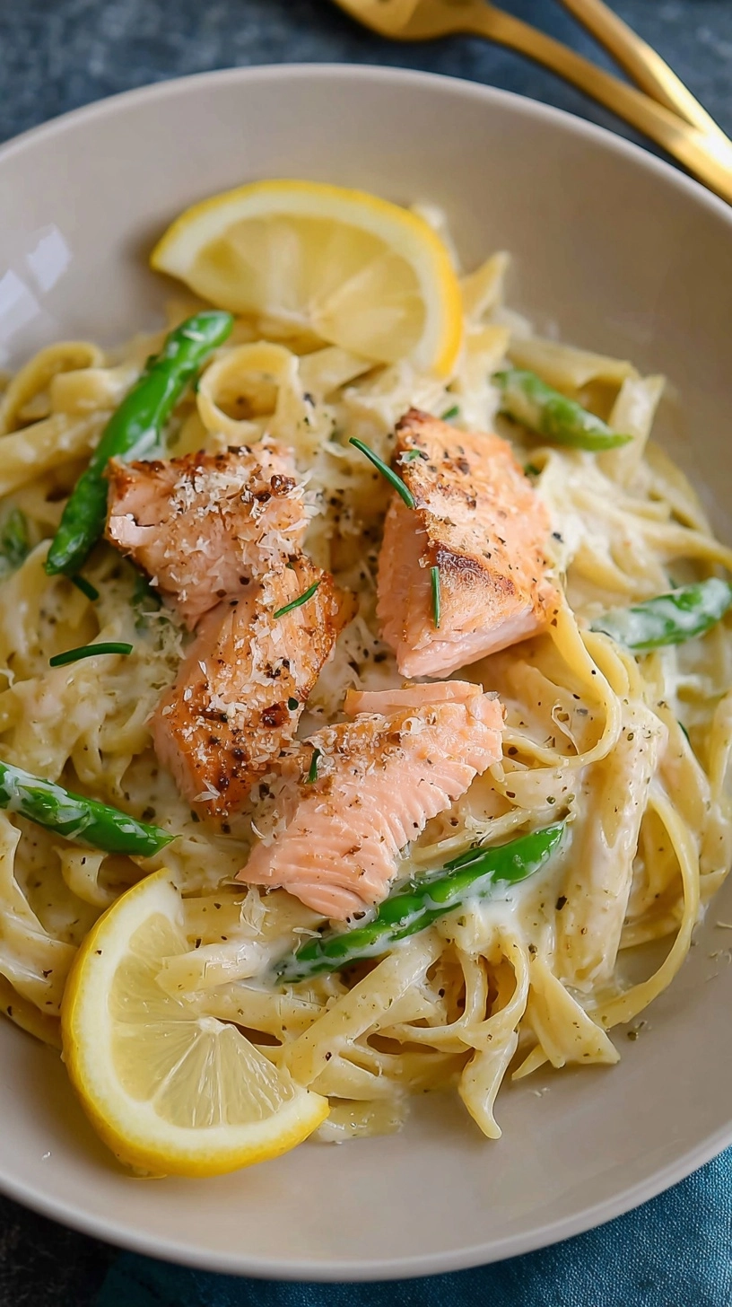 Transform your Salmon Pasta with Lemon Cream Sauce into a complete dining experience by pairing it with a crisp arugula salad dressed with balsamic vinaigrette and toasted pine nuts. The peppery greens provide the perfect counterpoint to the rich, creamy pasta. For an elevated presentation, serve in warmed pasta bowls with a drizzle of high-quality extra virgin olive oil and microgreens as garnish. Consider offering garlic breadsticks or focaccia on the side for texture contrast. Wine alternative: sparkling grape juice with fresh mint complements the lemon brightness beautifully.