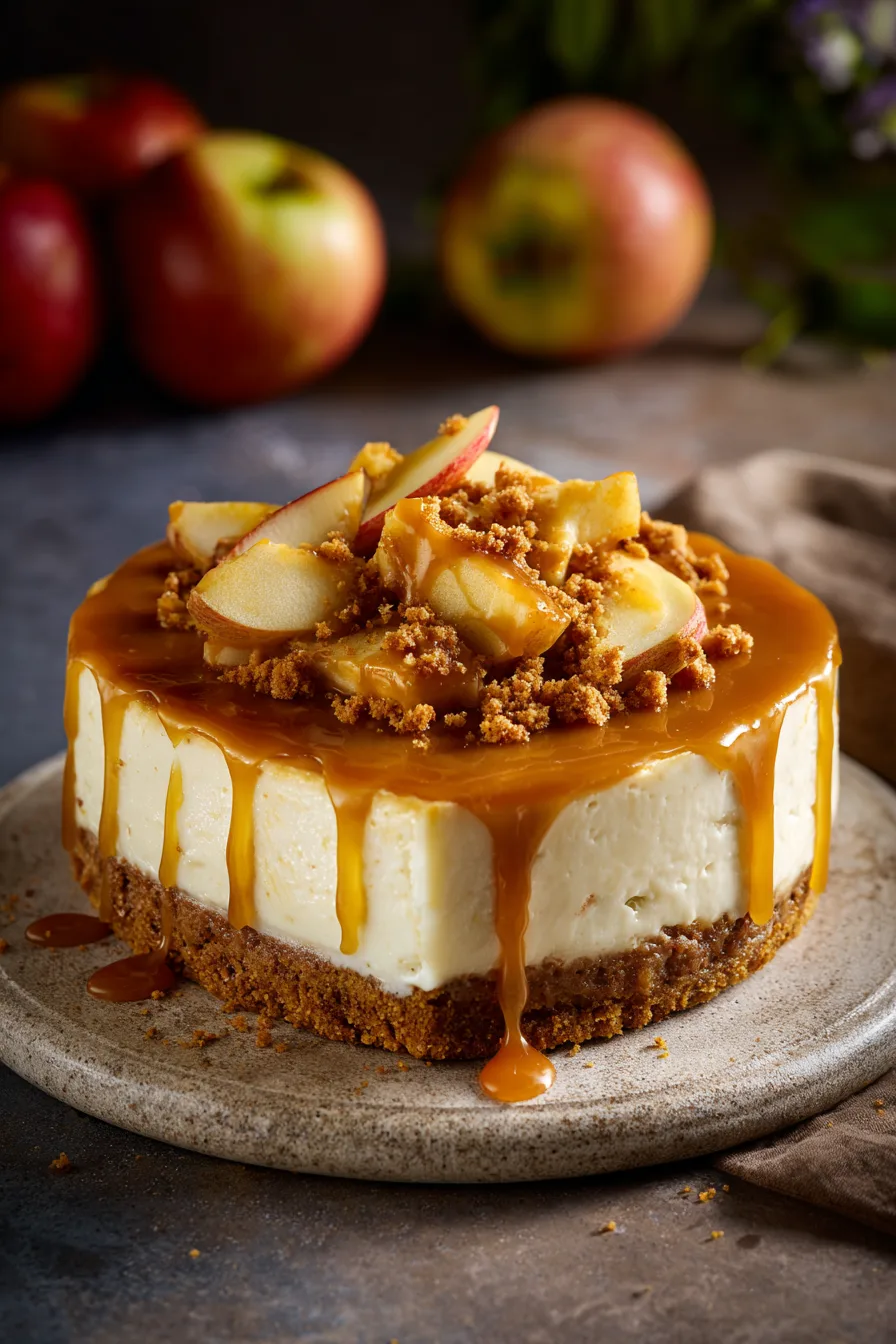 Present your Salted Caramel Apple Pie Cheesecake on a marble serving plate for elegant contrast. Garnish with a delicate drizzle of extra salted caramel, a sprinkle of toasted pecans, and a light dusting of cinnamon. Pair with freshly brewed coffee or spiced chai tea to complement the warm apple pie spices. For special occasions, add a small scoop of vanilla bean ice cream alongside each slice.
