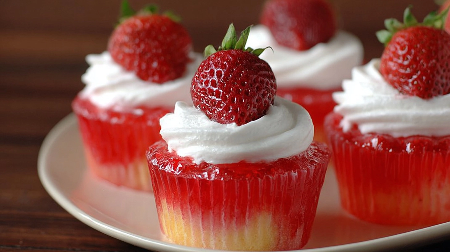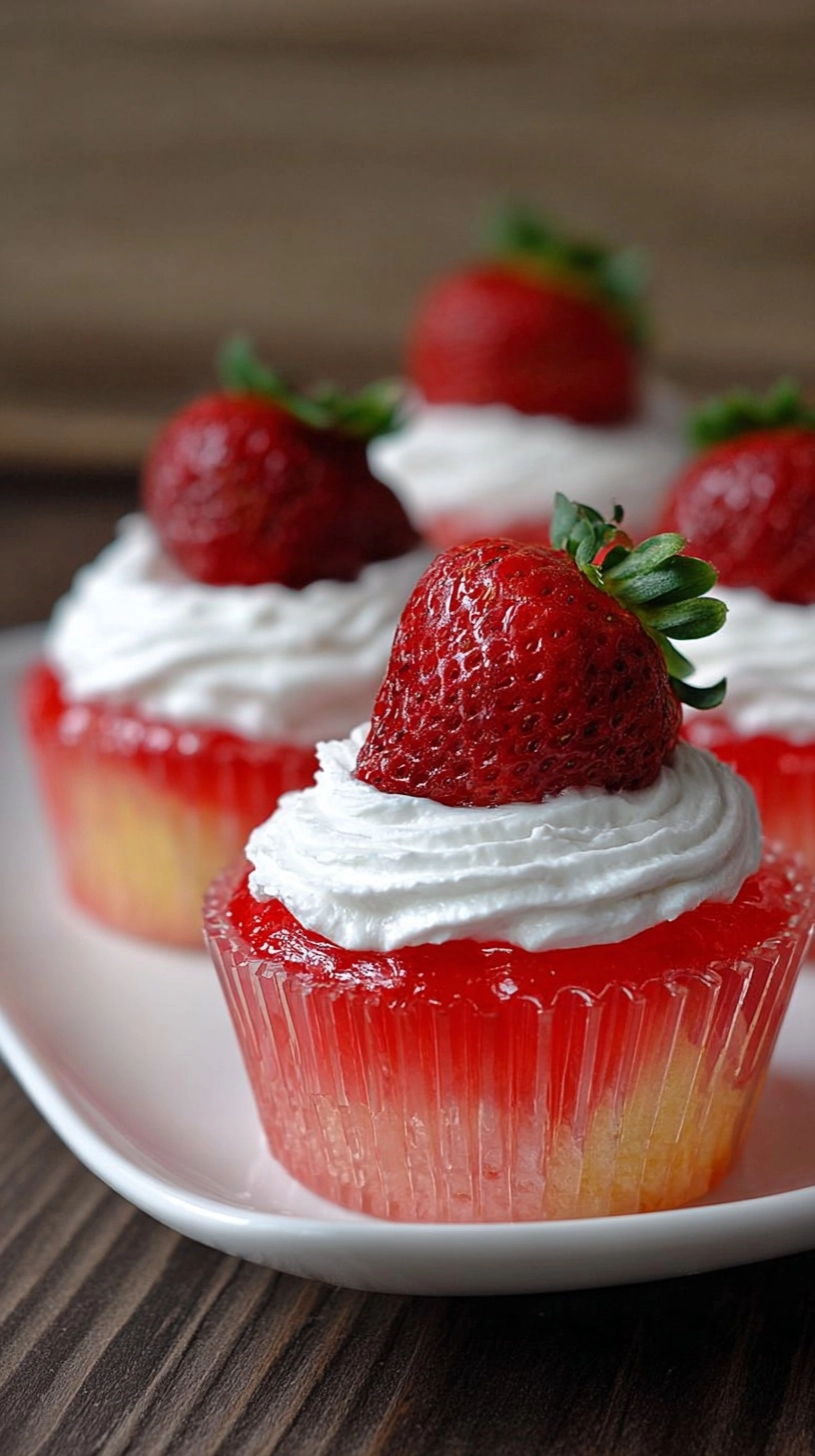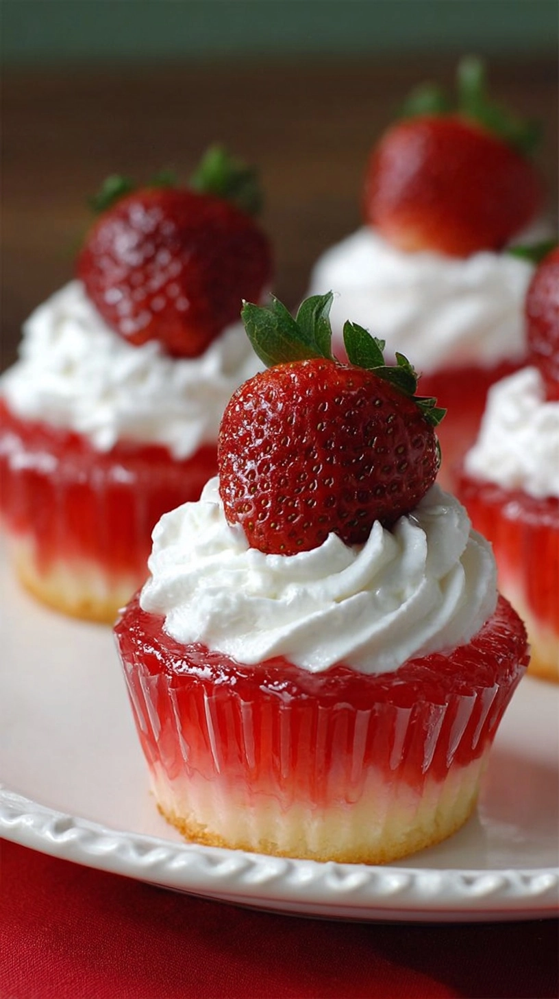 Present your strawberry jello cupcakes as the centerpiece of spring gatherings, birthday celebrations, or romantic dinner desserts. Pair them with vanilla ice cream for temperature contrast, or serve alongside fresh berries and mint for an elegant fruit-forward presentation.