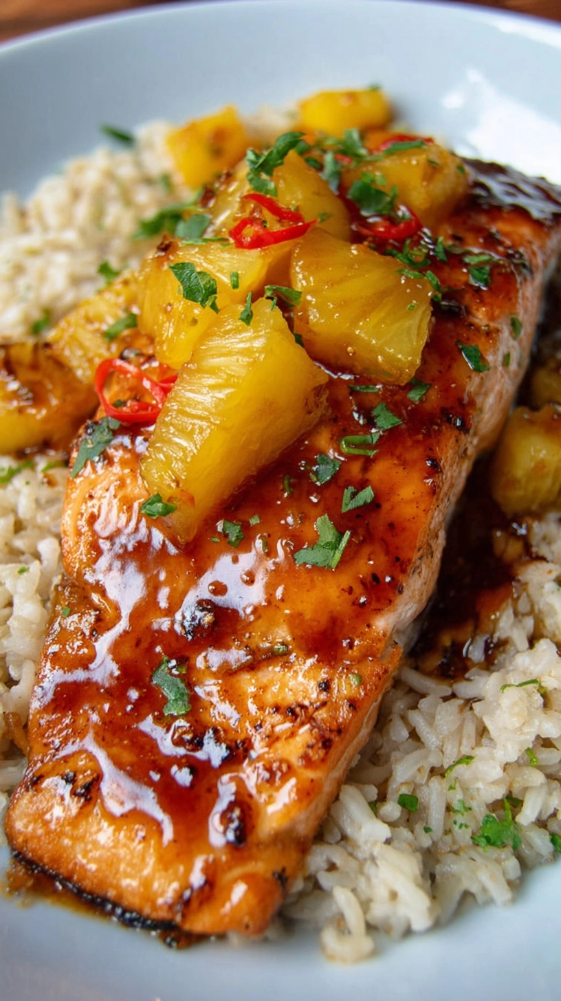 Elevate your Pineapple Glazed Salmon by pairing it with coconut jasmine rice that echoes the tropical theme. The creamy rice absorbs any excess glaze beautifully. For a low-carb option, serve over spiralized zucchini noodles or roasted asparagus spears.