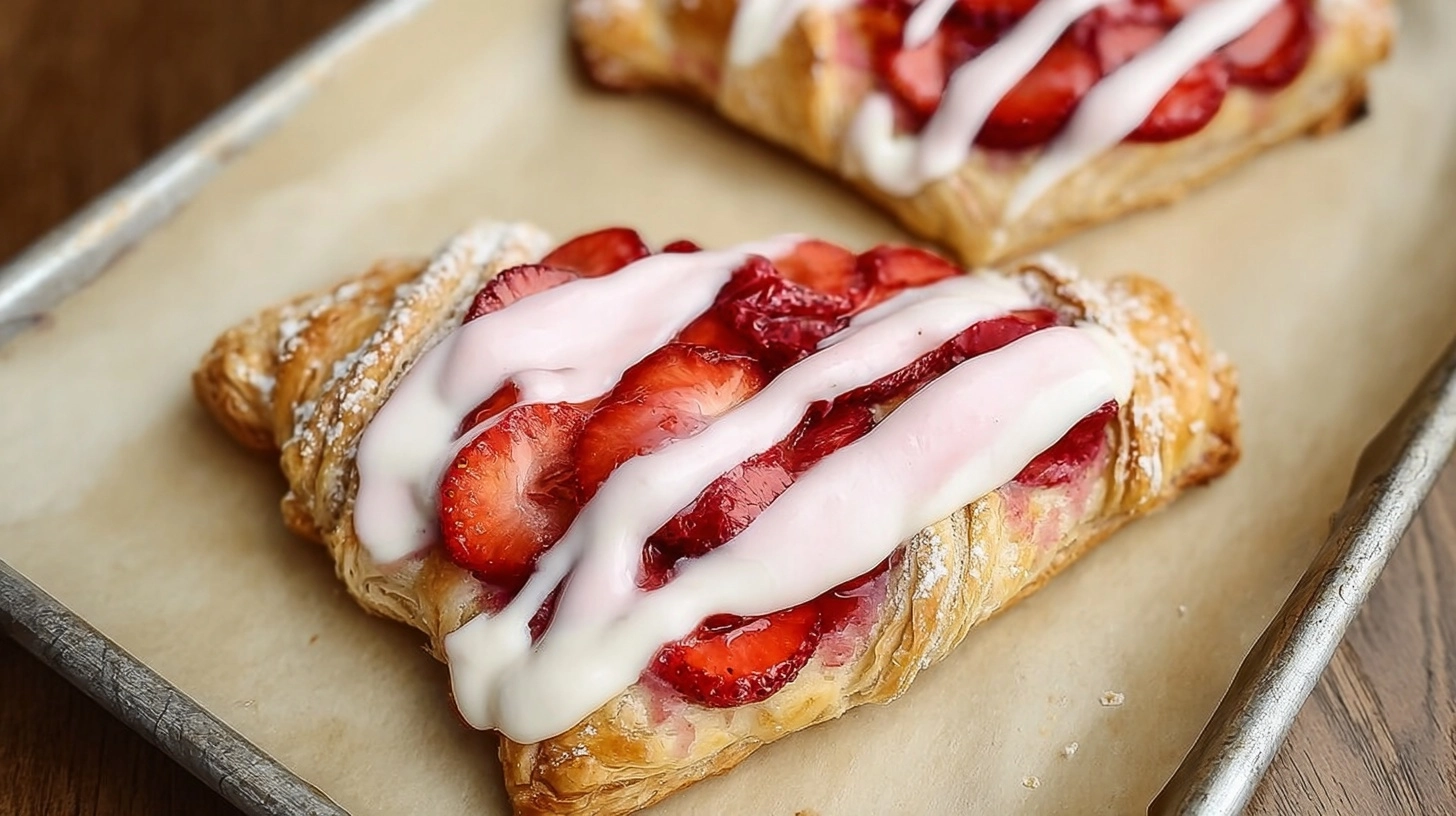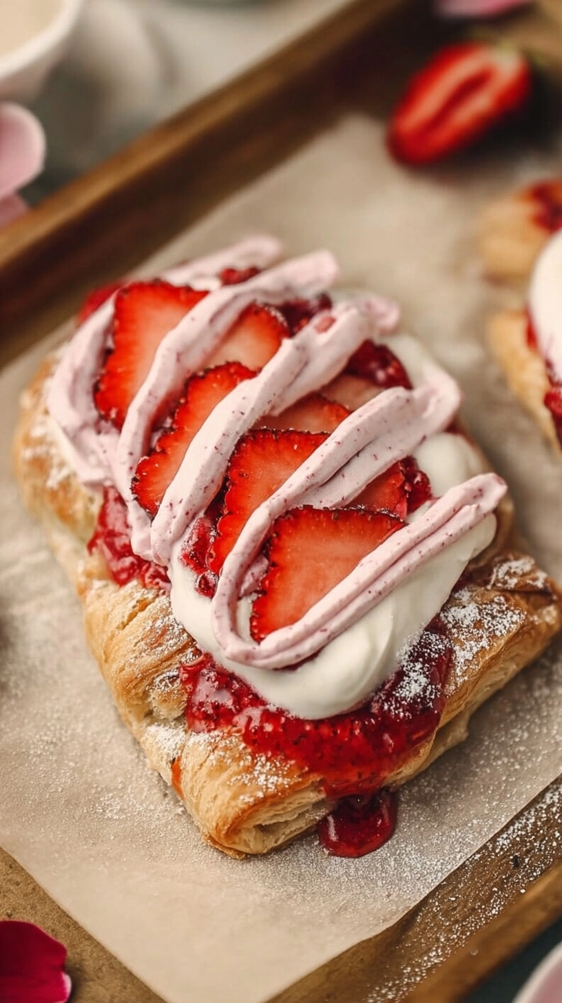 Store completed Danish in airtight containers at room temperature for up to 2 days, though they’re best enjoyed within 24 hours for optimal texture. For make-ahead convenience, prepare and shape pastries the night before, refrigerate on baking sheets, then bake fresh for Valentine’s morning. The strawberry cream can be prepared up to 3 days in advance and refrigerated, while unbaked shaped Danish freeze beautifully for up to 1 month.