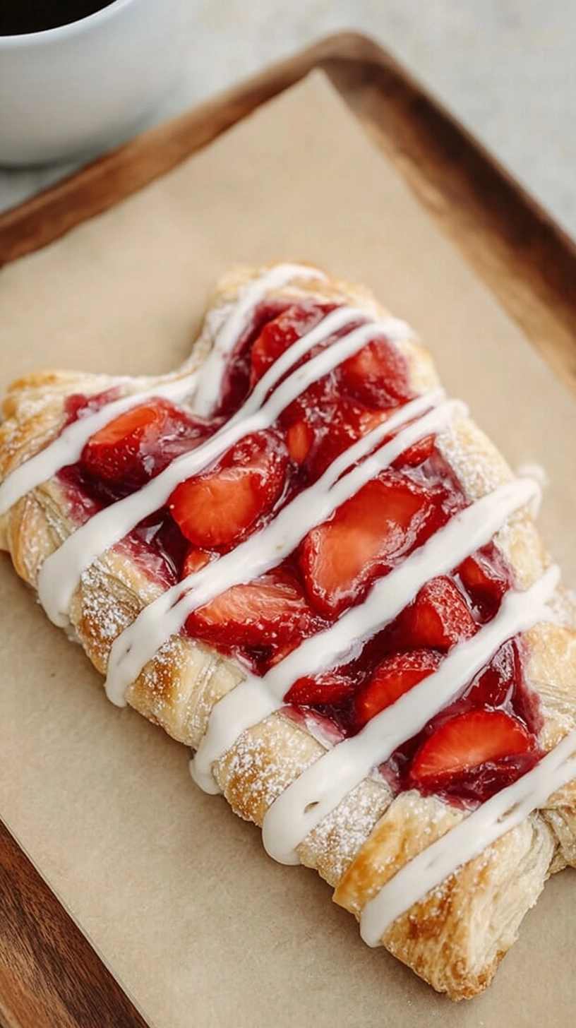 Present these Valentine’s desserts on a vintage cake stand dusted with powdered sugar and fresh strawberry slices for restaurant-quality presentation. Pair with freshly brewed coffee or herbal tea for an intimate breakfast-in-bed experience. For elegant dinner party finales, serve alongside vanilla bean coconut ice cream and a drizzle of strawberry coulis. Create a dessert charcuterie board featuring mini Danish alongside fresh berries, dark chocolate squares, and candied nuts for variety that pleases every palate.