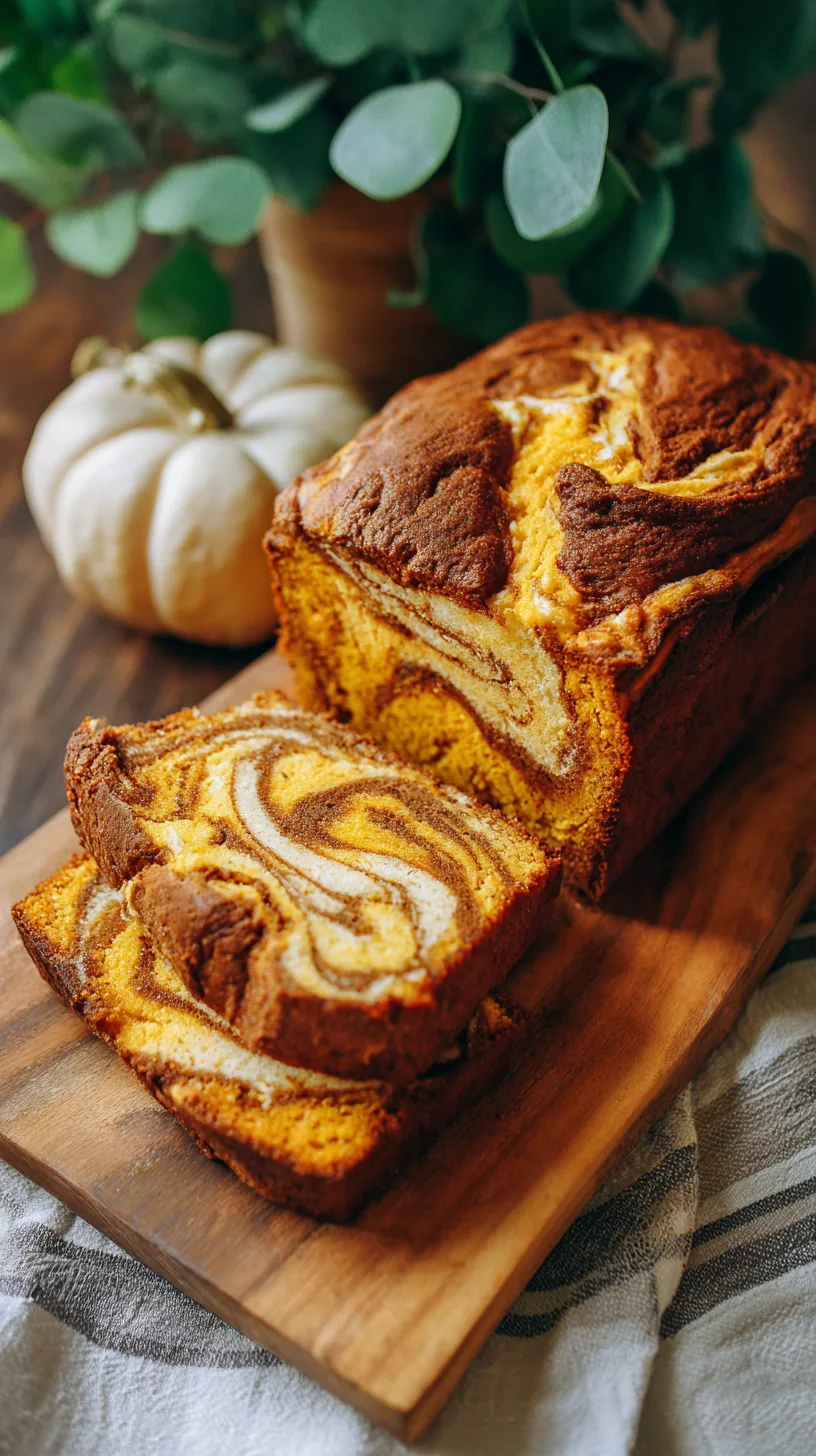 Bake for 60-65 minutes until a toothpick inserted in the pumpkin portions comes out with just a few moist crumbs. The cream cheese swirl should remain slightly soft, creating textural contrast in every slice.
