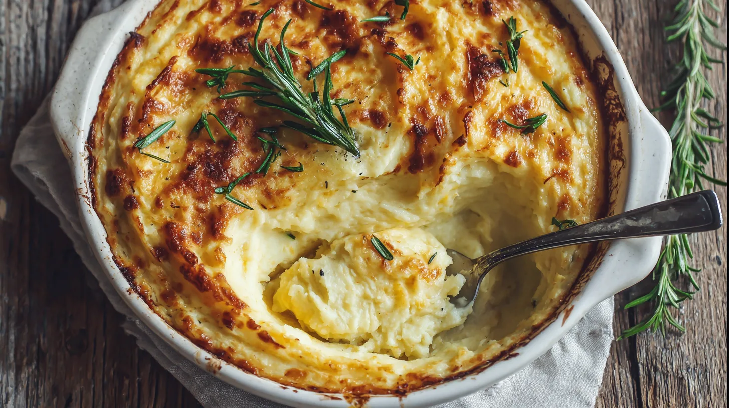 Transfer the mixture to a buttered 9×13 baking dish, creating gentle swirls on top with a fork for increased surface area. Bake at 375°F for 18-20 minutes until the peaks turn golden brown and the internal temperature reaches 165°F.