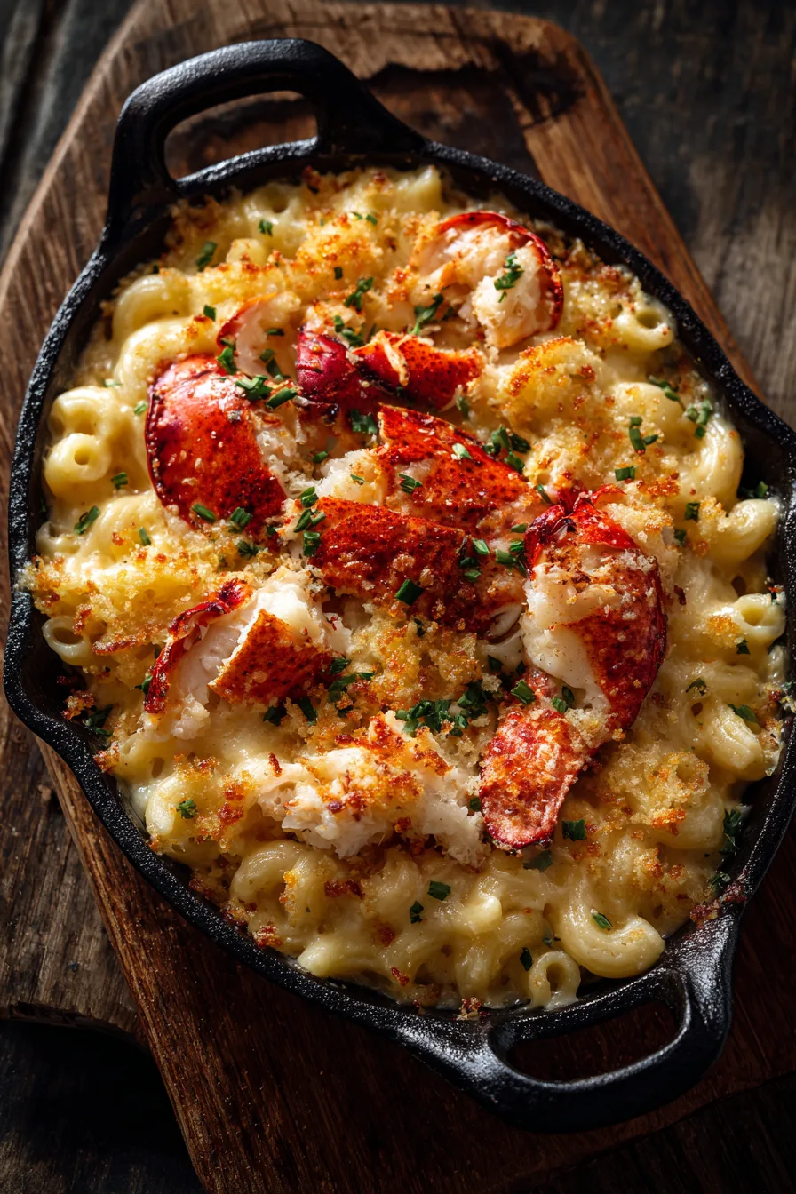 Melt remaining butter and toss with panko breadcrumbs. Sprinkle evenly over the mac and cheese, then arrange reserved lobster pieces on top. Bake at 375°F for 25-30 minutes until bubbling and golden brown.