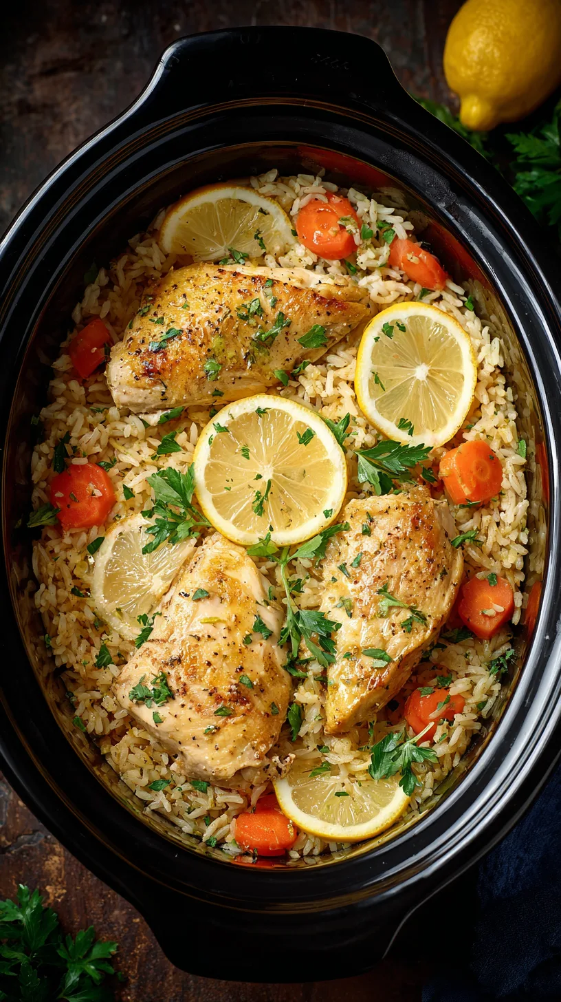 Ready to transform your dinner routine? Try this recipe tonight and experience the perfect balance of tender chicken, fluffy rice, and bright lemon herbs. Share your results in the comments below, and don’t forget to explore our collection of other one-pot slow cooker masterpieces for more weeknight inspiration!