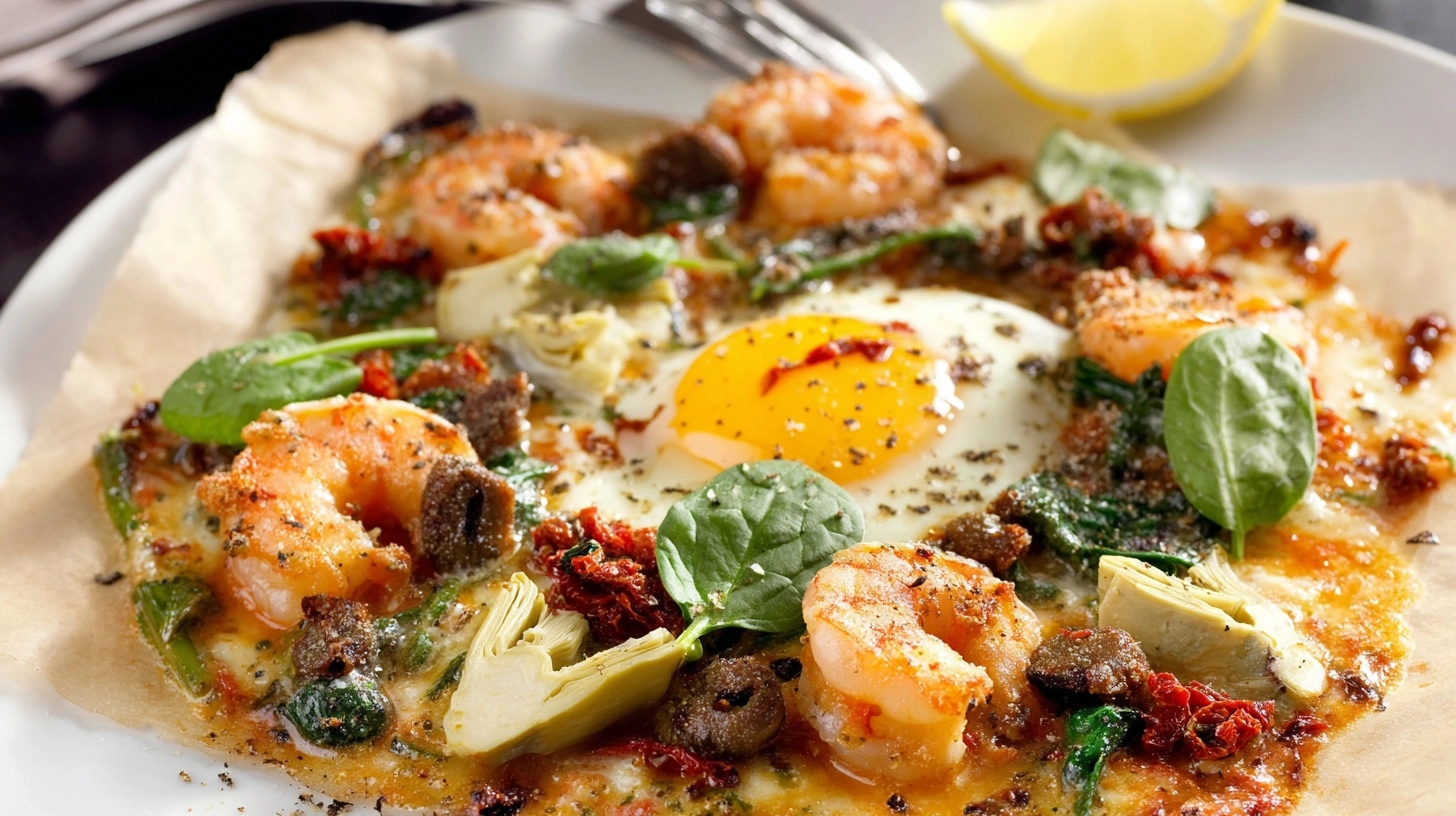 Transform this Tuscan Shrimp with Spinach, Artichokes, Sun-Dried Tomatoes into a lighter option by substituting zucchini noodles for traditional pasta, reducing calories by 220 per serving. Replace heavy cream with Greek yogurt mixed with pasta water for protein-enhanced creaminess. Use nutritional yeast instead of Parmesan for a vegan-friendly option that maintains umami richness. Increase vegetable content by adding roasted bell peppers or cherry tomatoes, boosting antioxidant levels while maintaining authentic Mediterranean flavors.