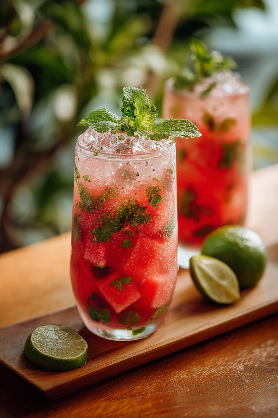 Elegant Presentation: Rim glasses with lime juice and coarse sea salt for a sophisticated twist that enhances the watermelon’s natural sweetness.